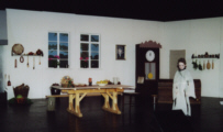 eine Tischgruppe. An der Wand hängt ein Bild von Edo Wiemken. In der