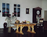 Johann geht. Maria setzt sich, stützt ihr Gesicht wieder auf ihre Hand und schläft fest ein. Plötzlich schlägt die Uhr Mitternacht. Die Gespenster erscheinen wieder durch die Geheimtür. | |