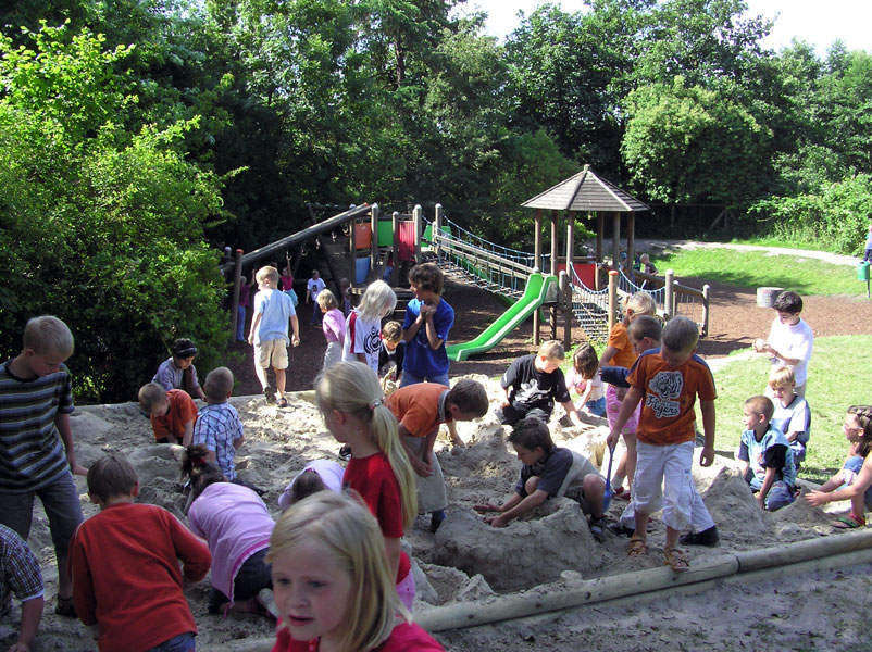 Sitzgelegenheiten und Sandkasten |