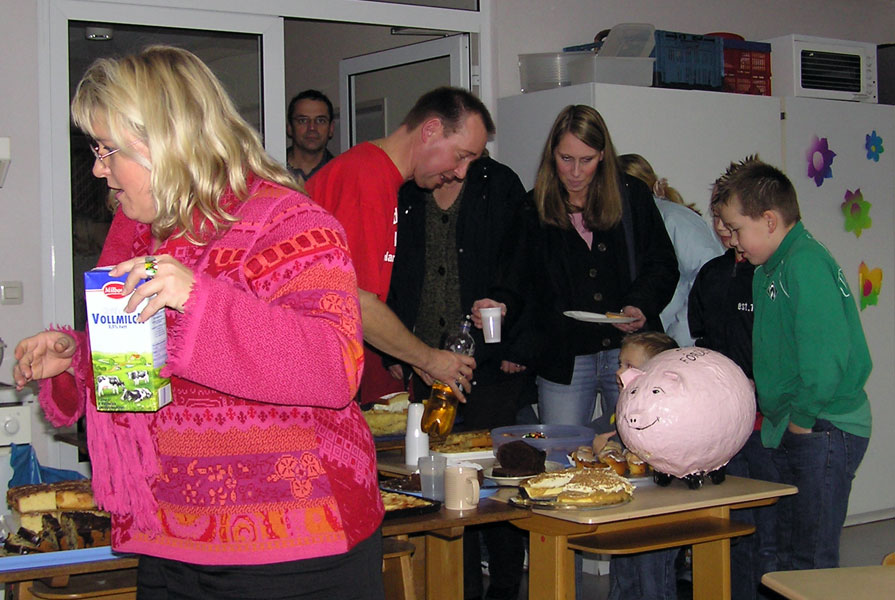 Durch den Verkauf der von Eltern gespendeten Kuchen und durch die Fütterung des "Förderschweins" erzielte der Förderverein einen Gewinn von 220 Euro!!!