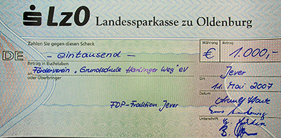im Rat der Stadt Jever spendet dem Förderverein 1000 Euro für Hausaufgabenhilfe |