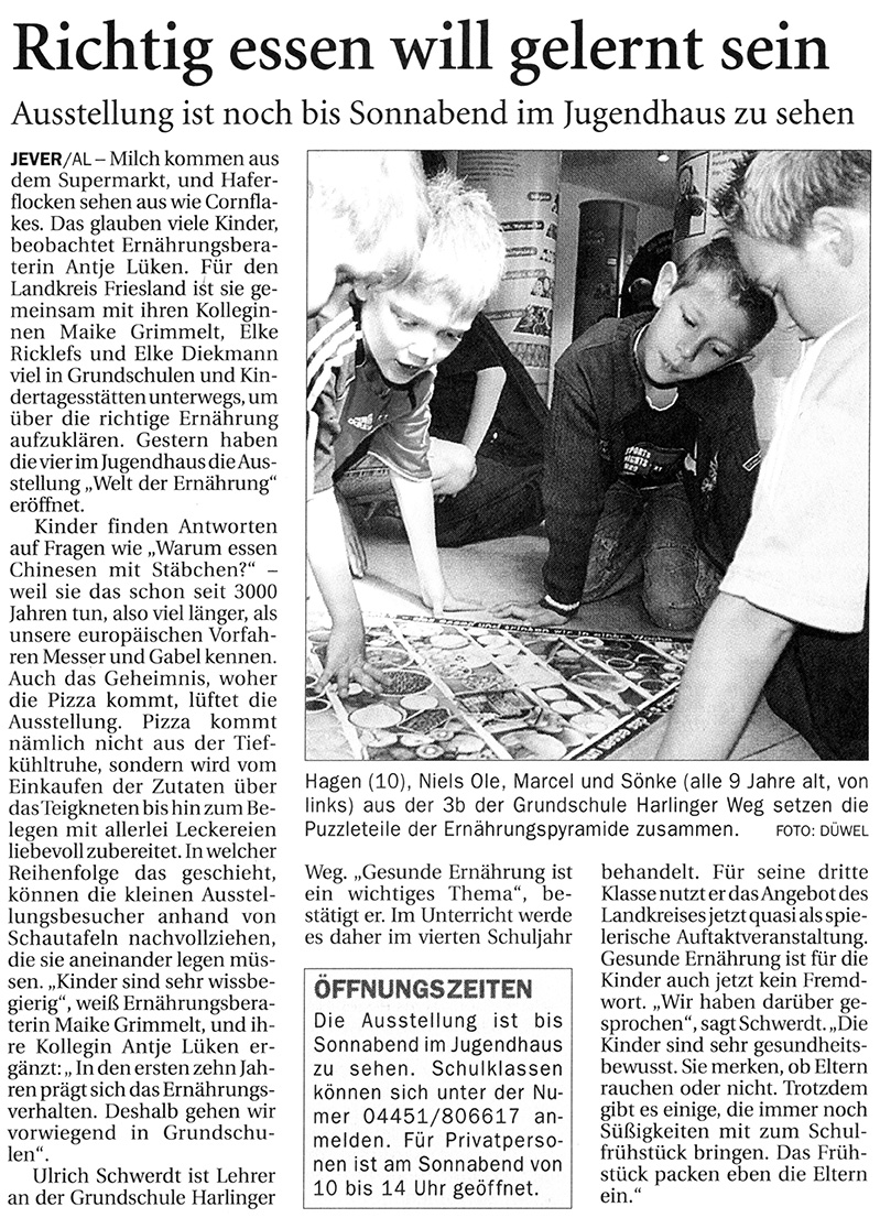 Jeversches Wochenblatt Ausstellung "Entdecke die Welt der Ernährung" |