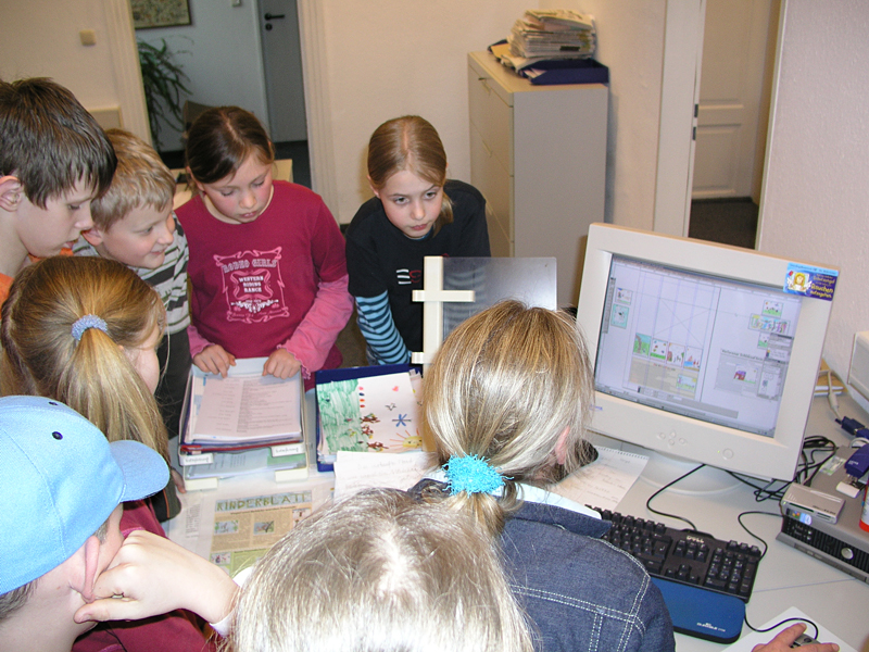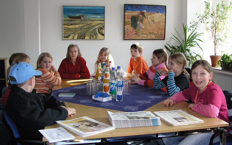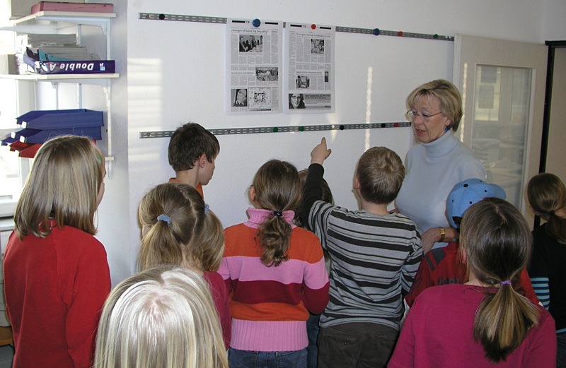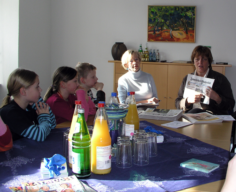 Frau Sabin und Frau Ringes erklären den Aufbau der Zeitung