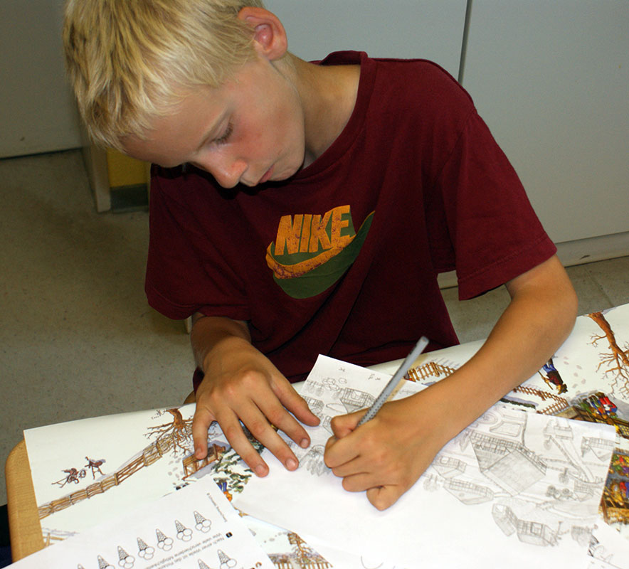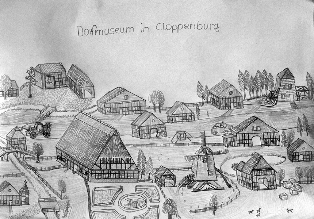 Patrick Ferro zeichnet den Besuch im Museumsdorf