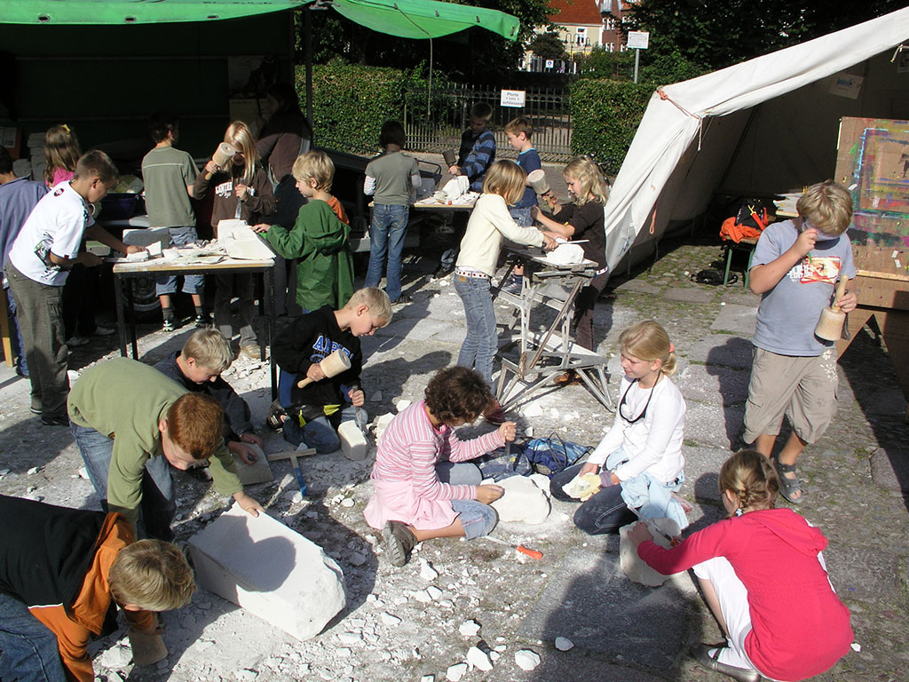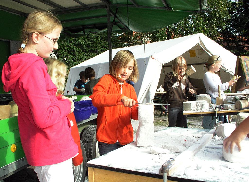 Klassen 3a und 3b in der Zeltwerkstatt