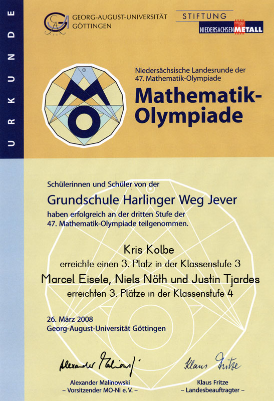Mathematik-Olympiade beteiligten sich 1818 Kinder aus 4. Klassen. |