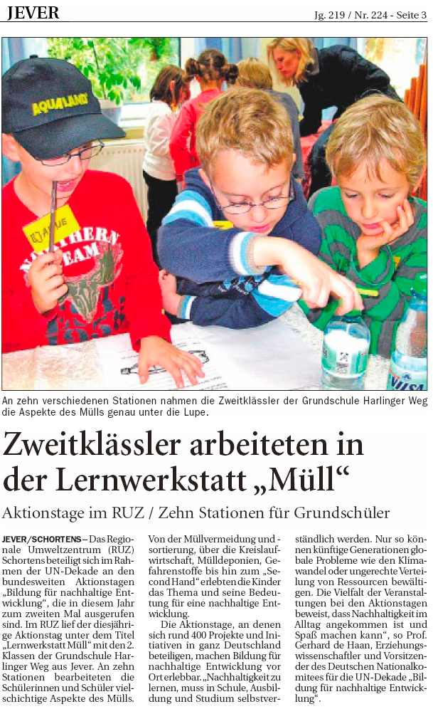arbeiten in der Lernwerkstatt "Müll" Bericht Jeversches Wochenblatt |