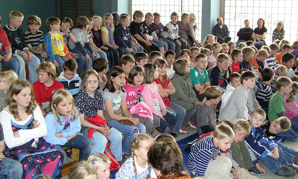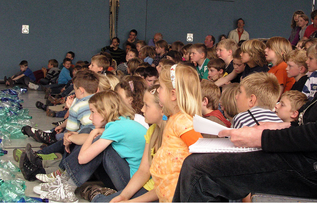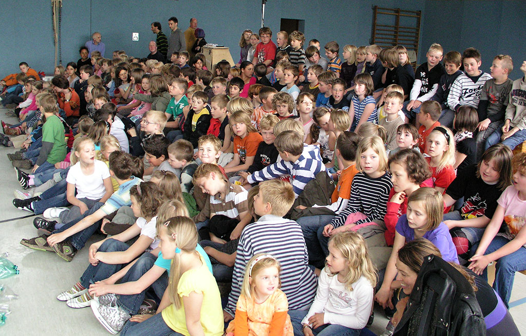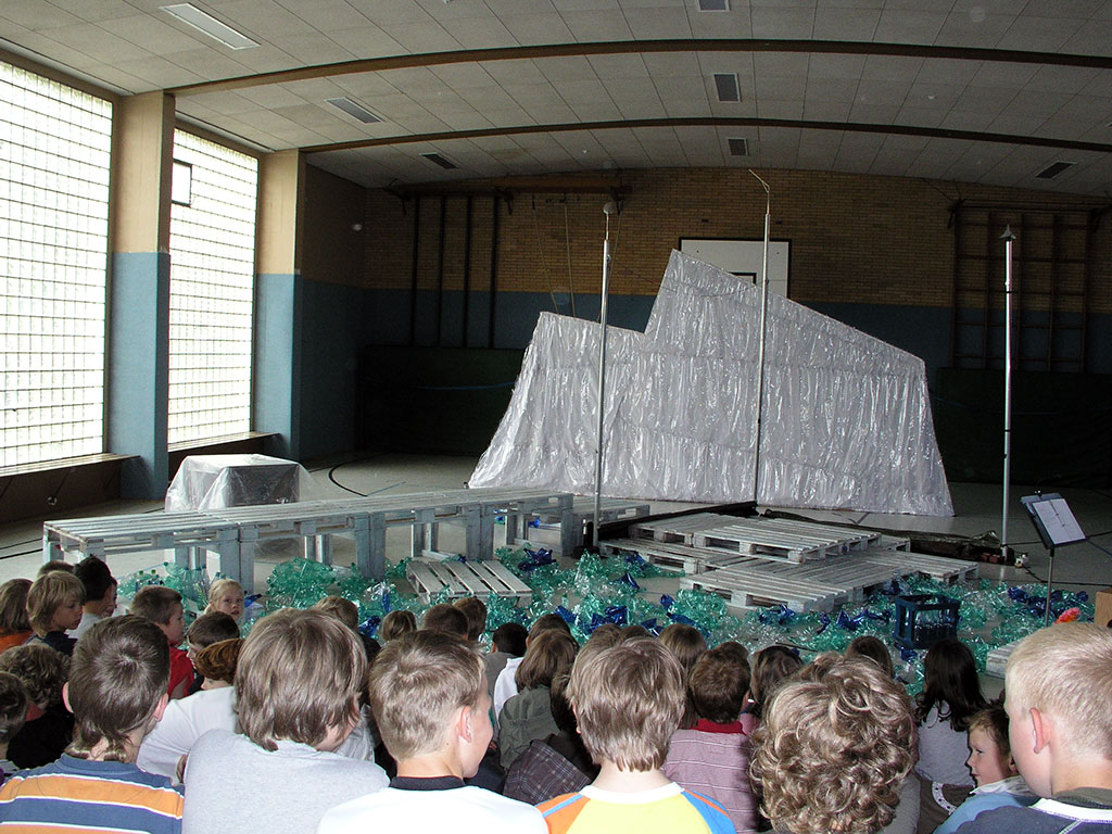 Theaterbesuch der dritten Klassen in der Turnhalle der Paul-Sillus-Schule
