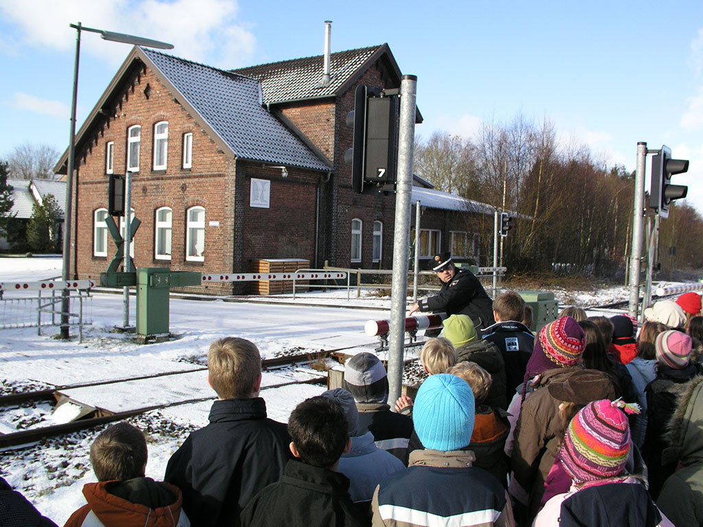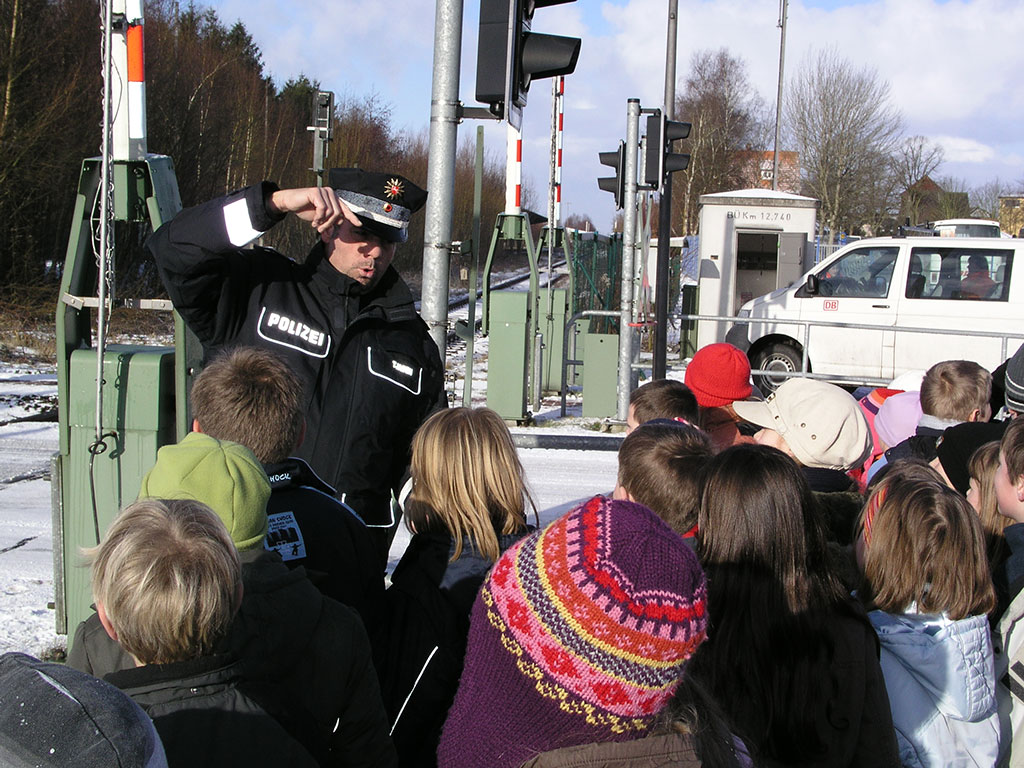 Verhalten am Bahnübergang und auf dem Bahnsteig