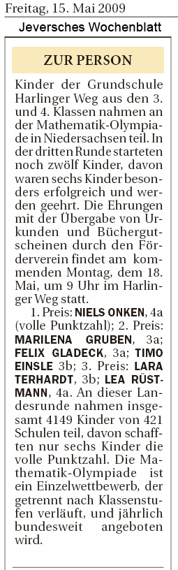 Jeversches Wochenblatt, 19.05.2009 |