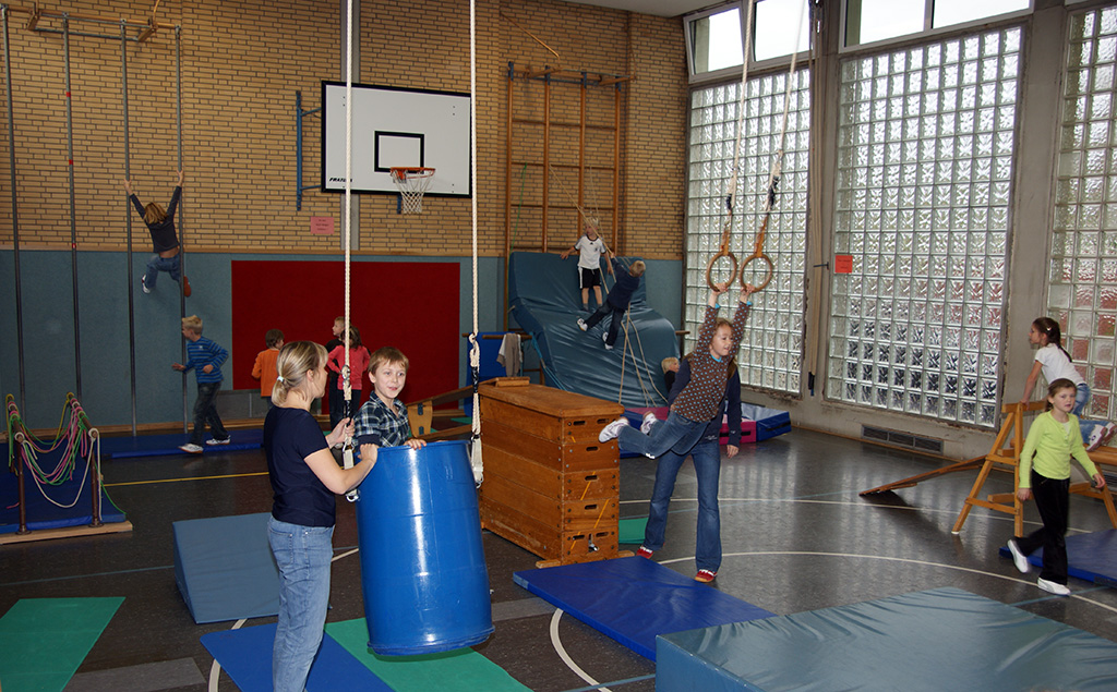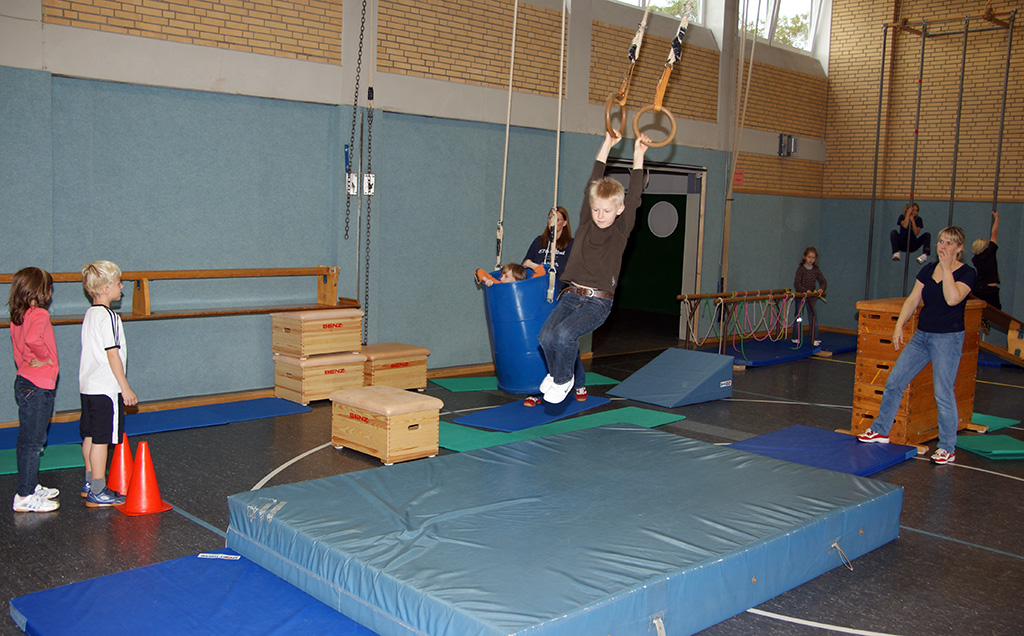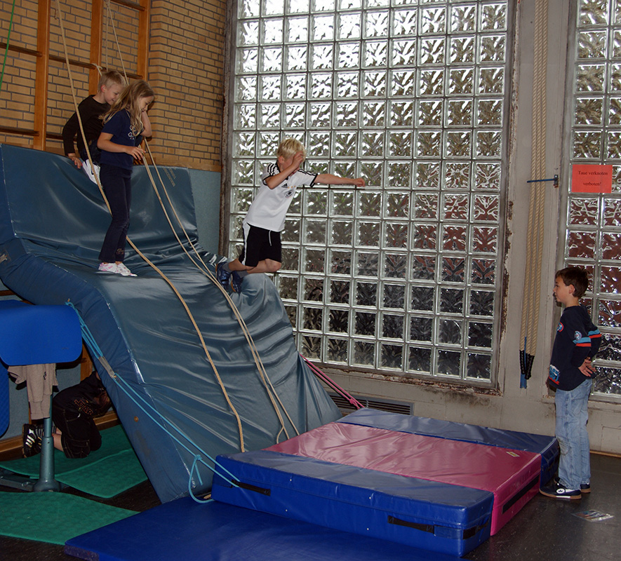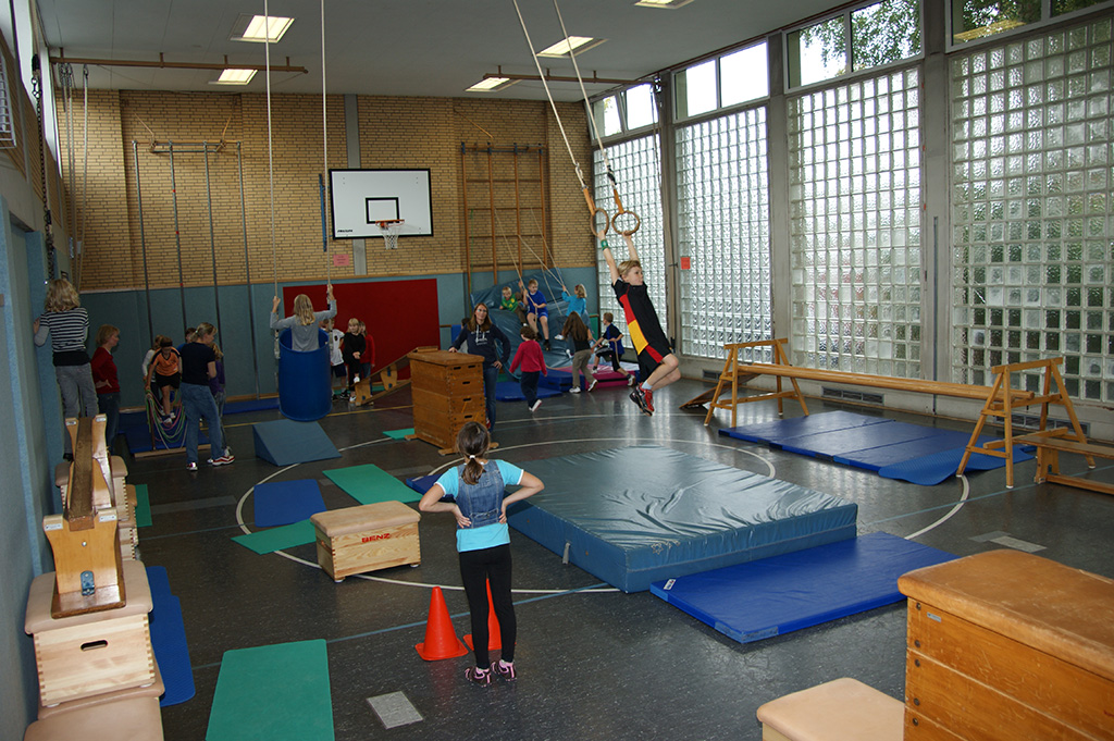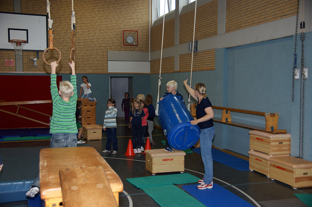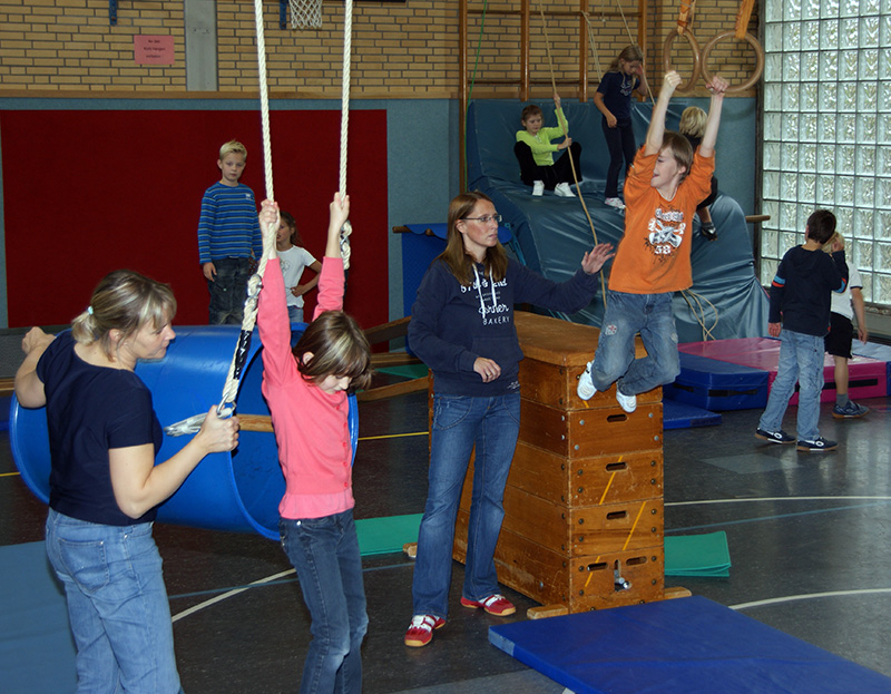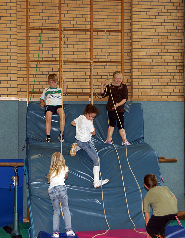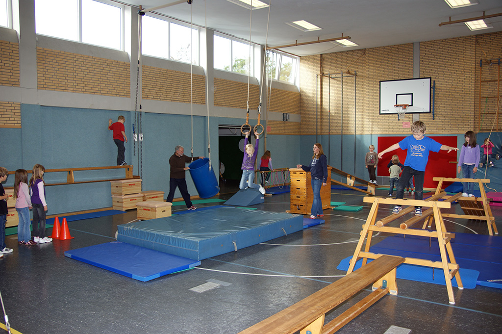 Leider musste das Spielfest in diesem Jahr wegen des schlechten Wetters in der Turnhalle stattfinden.