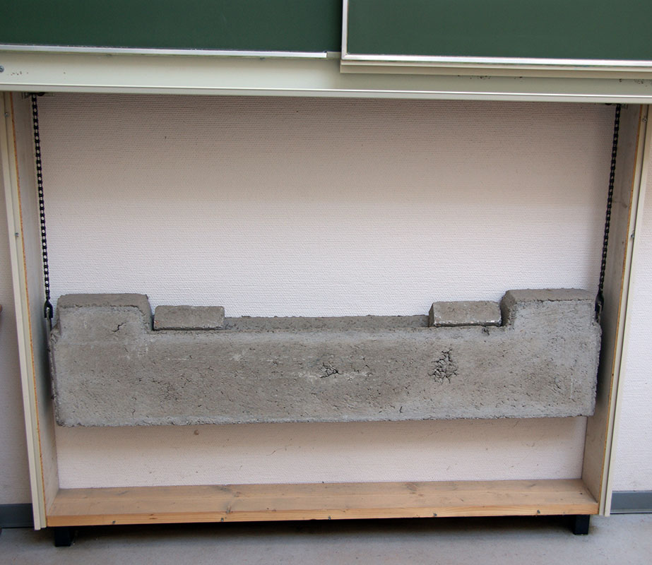 Mitarbeiter des Bauhofs bringen die Tafel zum Dachboden der Paul-Sillus-Schule