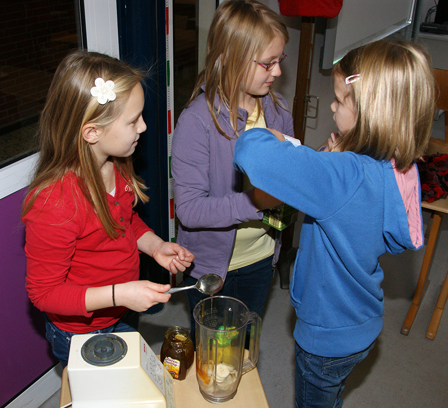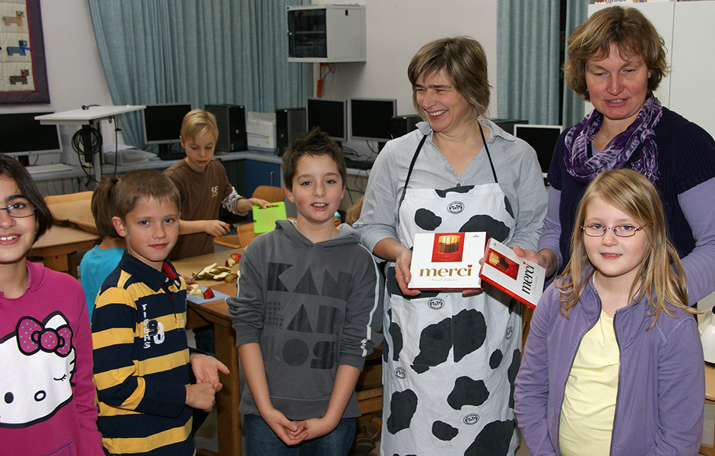 Die KlassensprecherInnen der Klassen 3a 3b bedanken sich bei Anke und Anja
