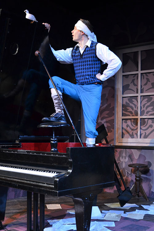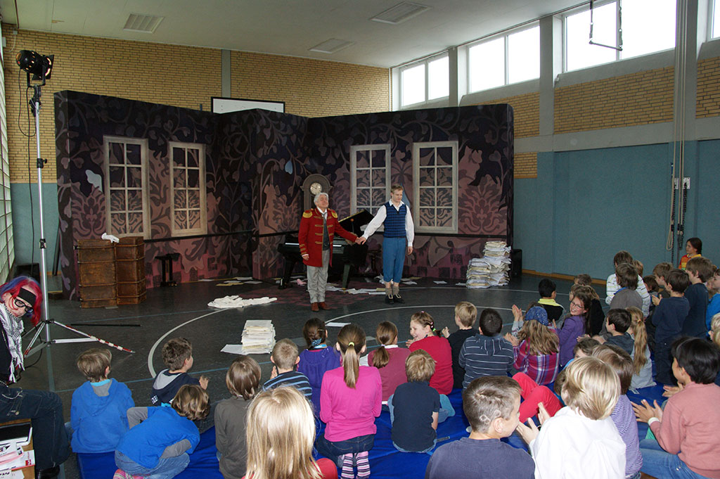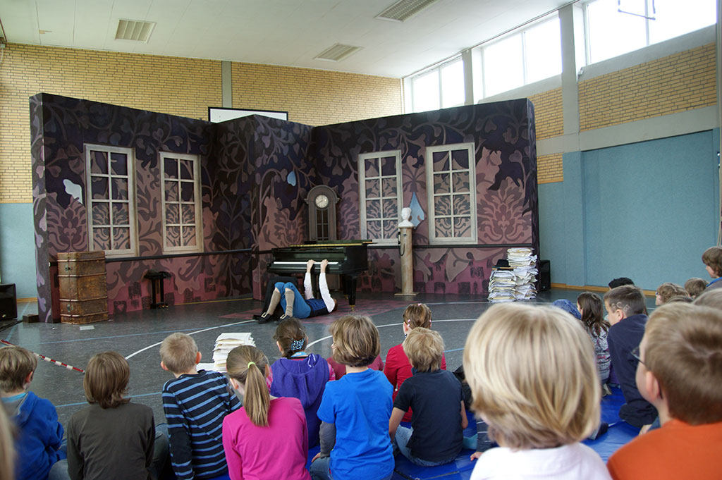 auf dem Kopf am Klavier und übt. Es ist 8.15 Uhr und Otto kann nicht