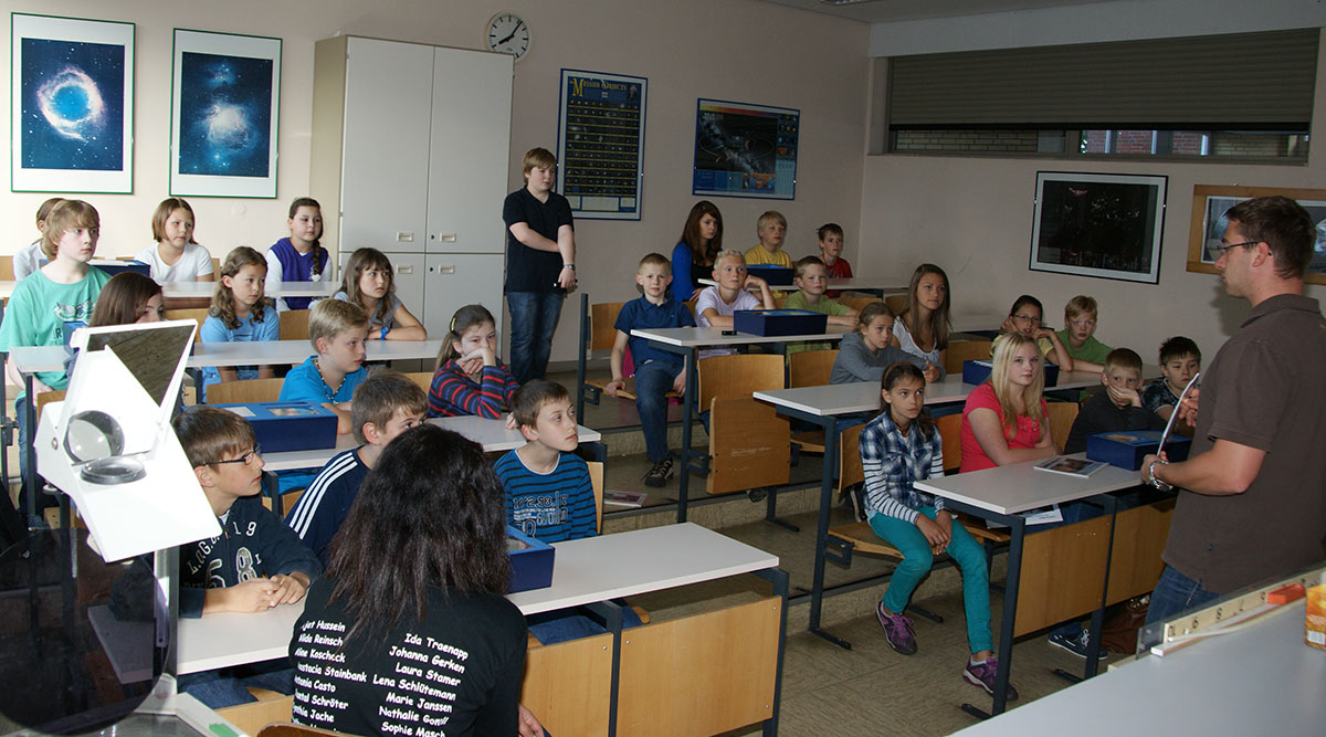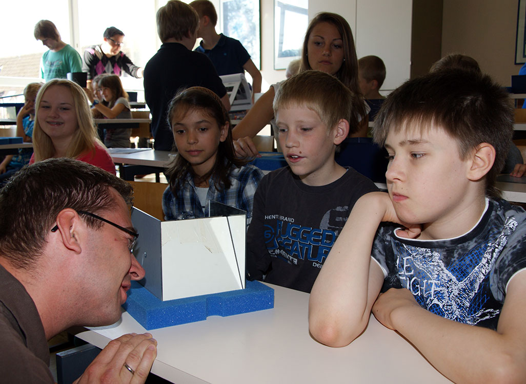 Experimente in 8 Gruppen unter Anleitung von SchülerInnen der Klasse 8 des Gymnasiums