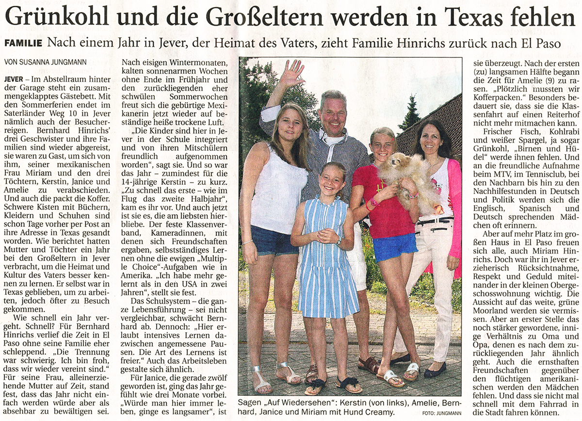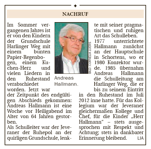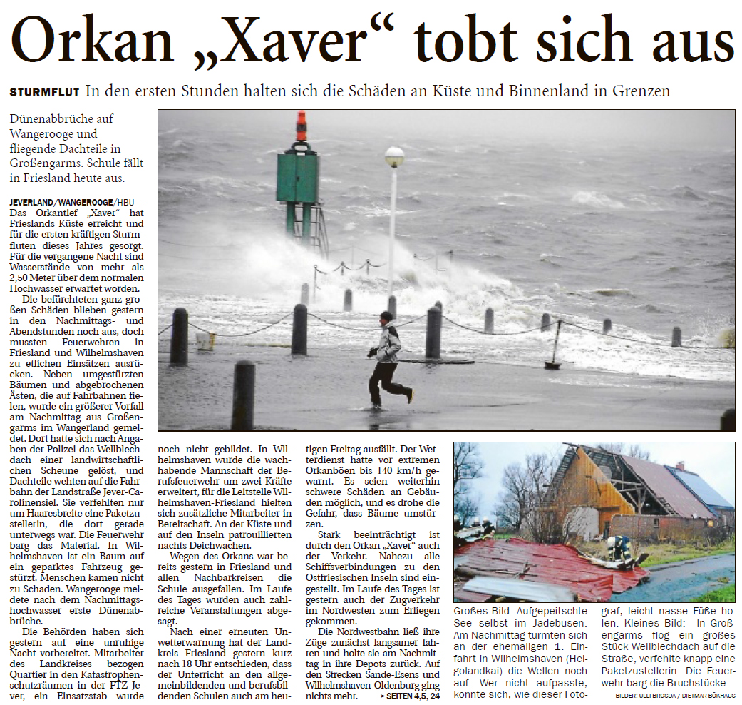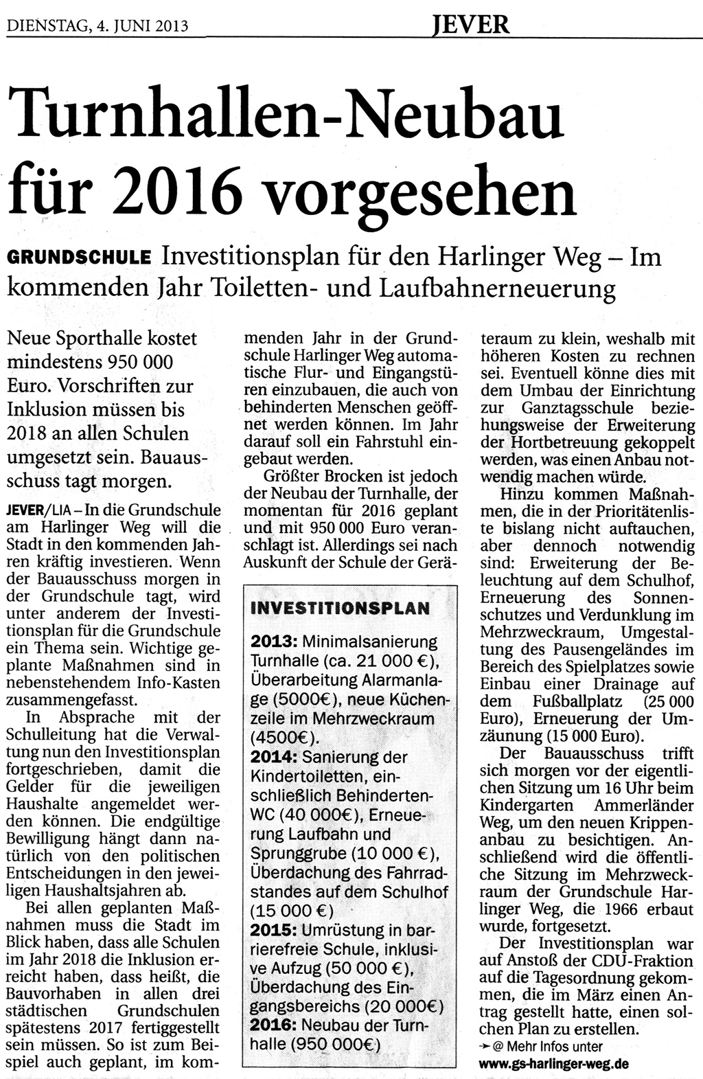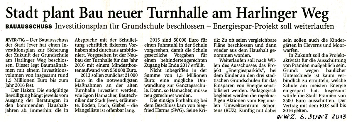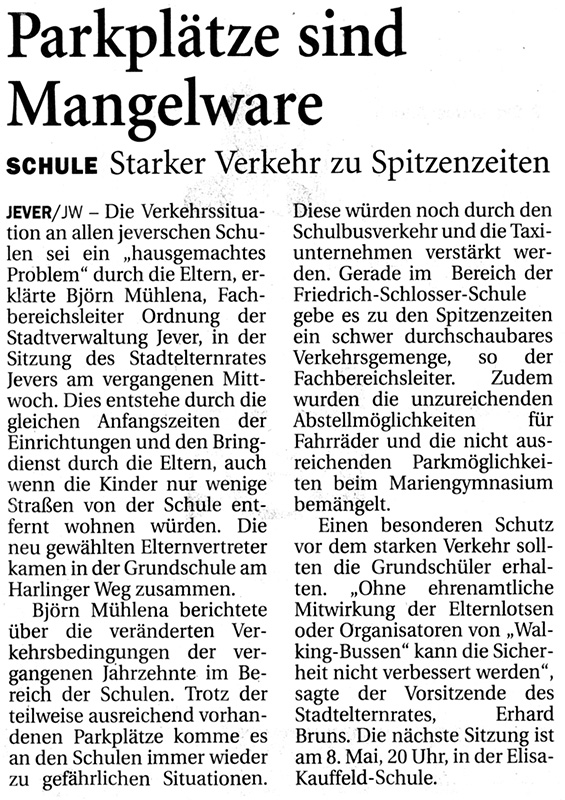 Unterrichtsausfall Bericht Jeversches Wochenblatt 6.12.2013 Bericht Jeversches Wochenblatt 7.12.2013 Bericht