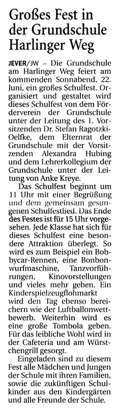 der 4. Klassen und der PC-AG Bericht Jeversches Wochenblatt |