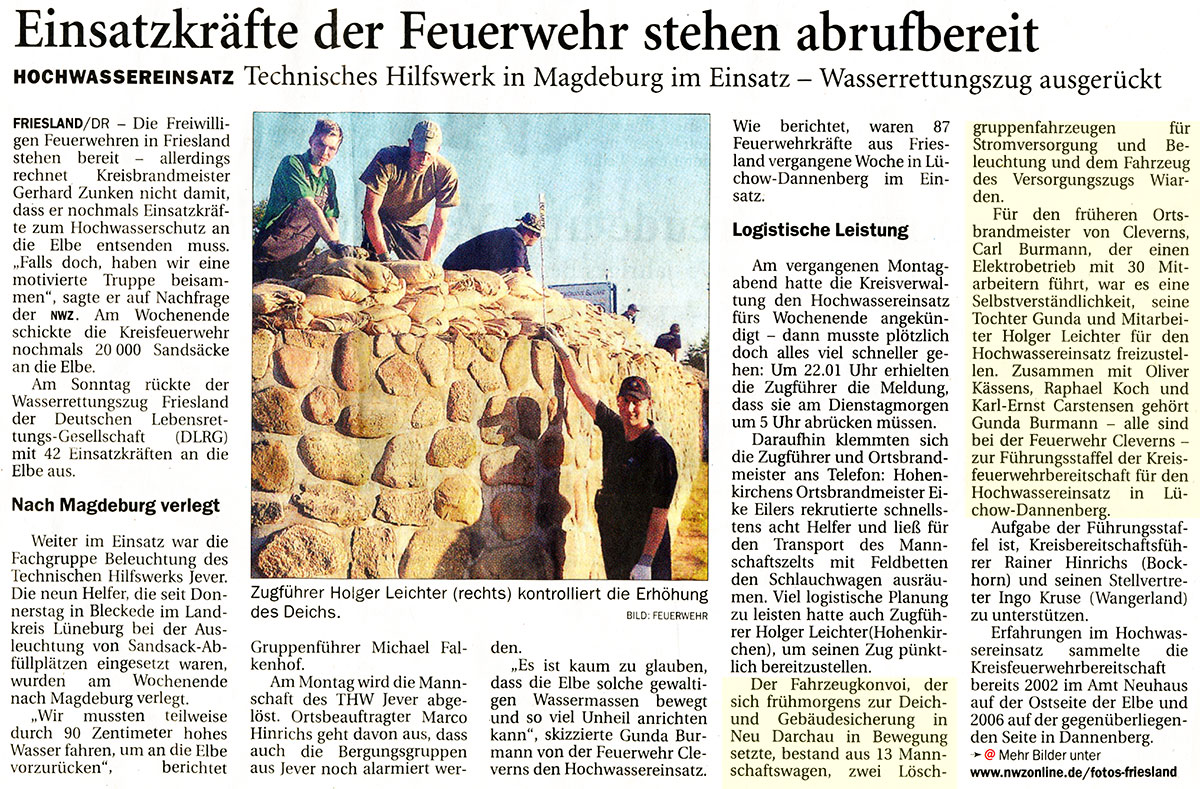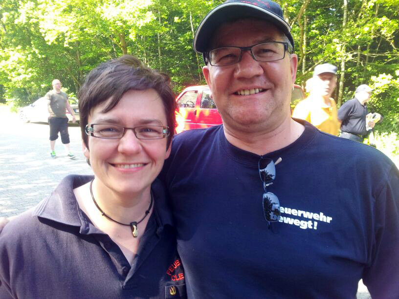 Hausmeister Olli Kässens mit seiner Frau Gunda beim Einsatz der Freiwilligen Feuerwehr