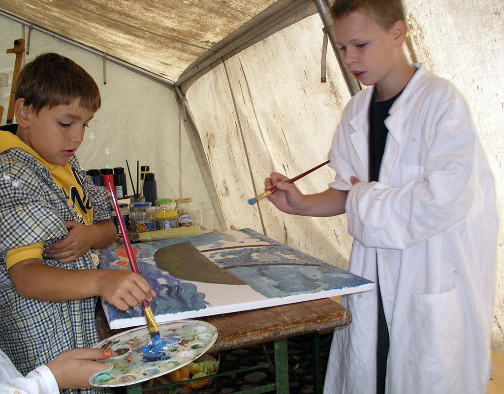 11. September 2013 Klassen 4a/b besuchen die Zeltwerkstatt der Kunstschule |