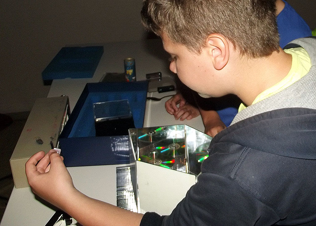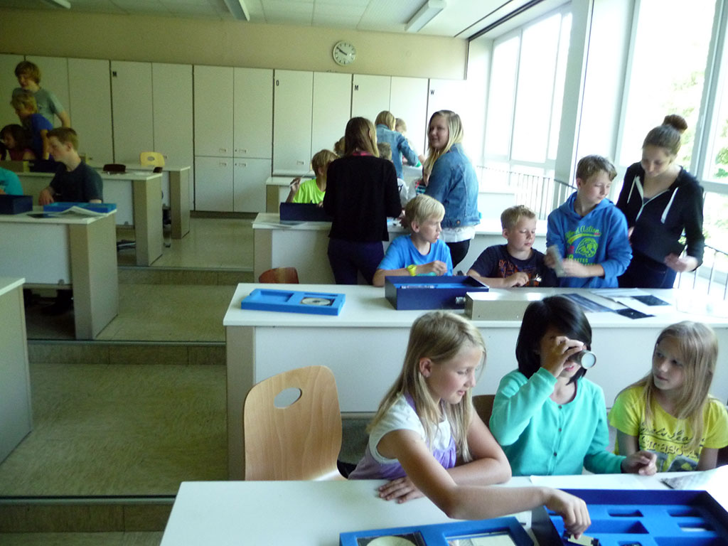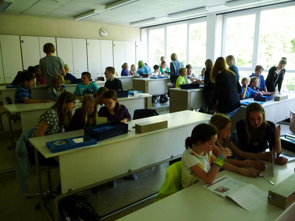 Experimente in 8 Gruppen unter Anleitung von SchülerInnen der Klasse 8 des Gymnasiums