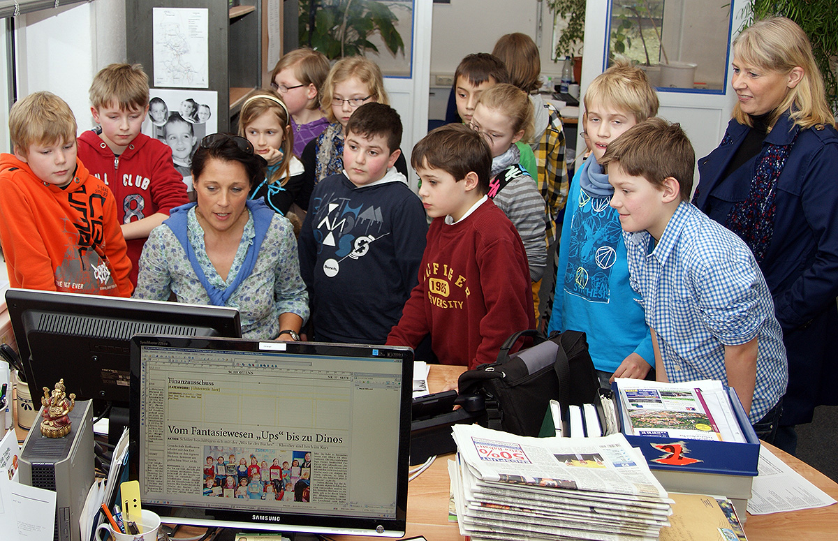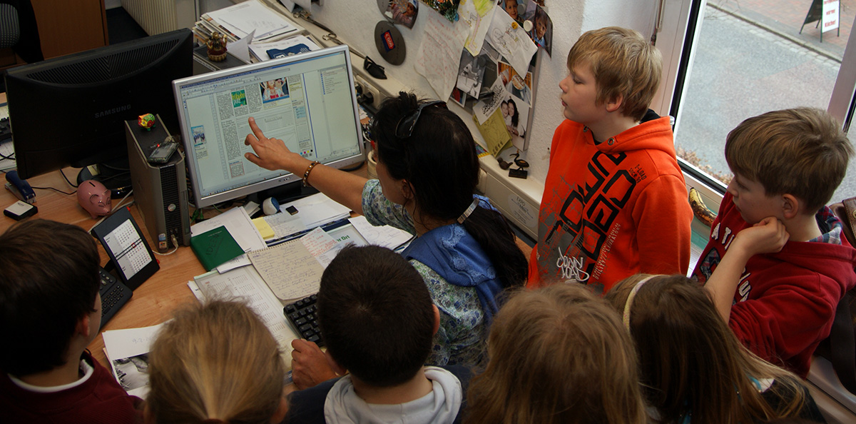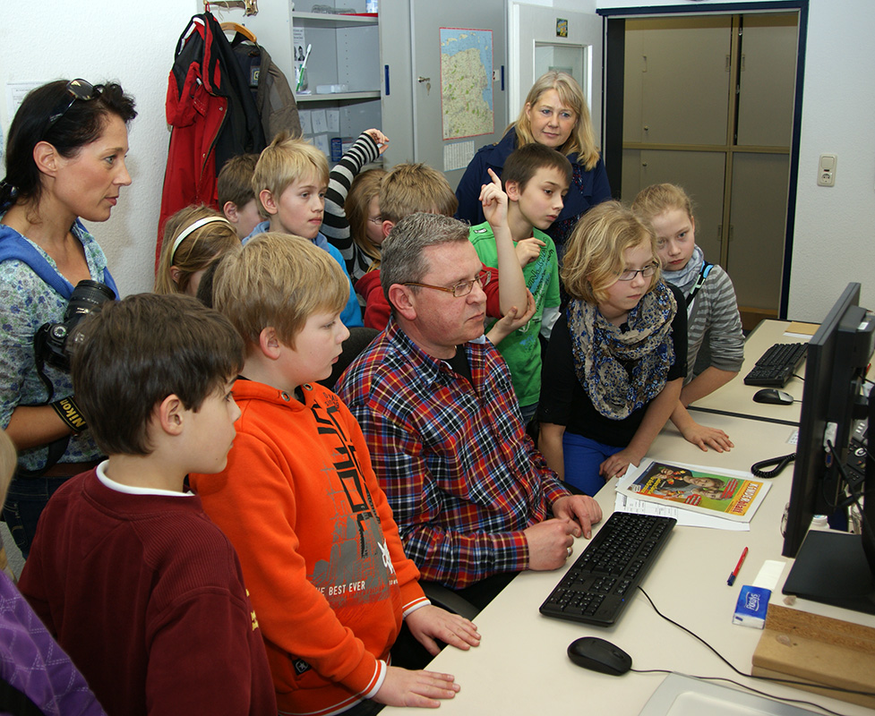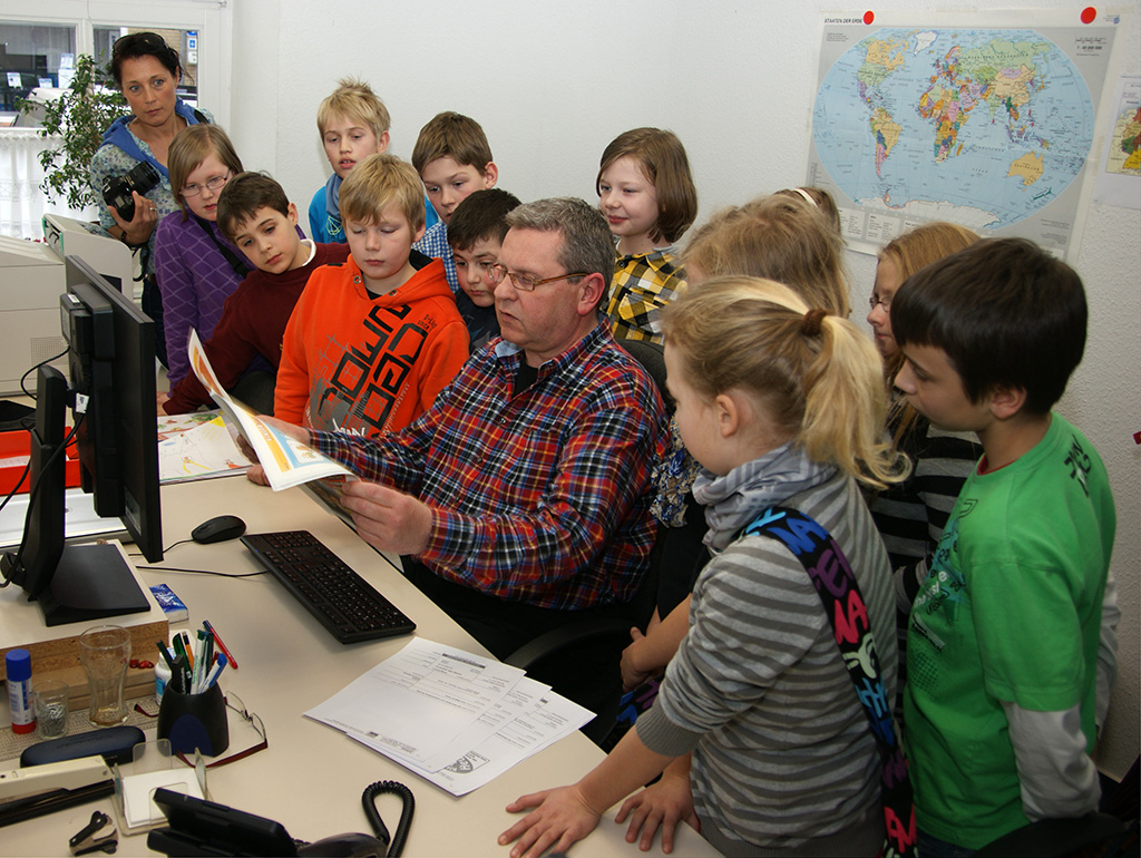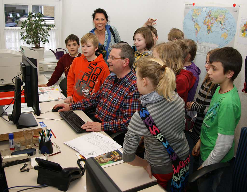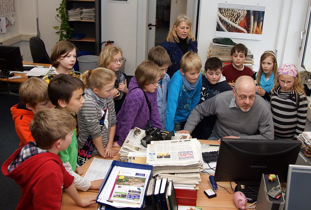 Kinder der PC-AG und der 4. Klassen besuchen das Jeversche Wochenblatt |