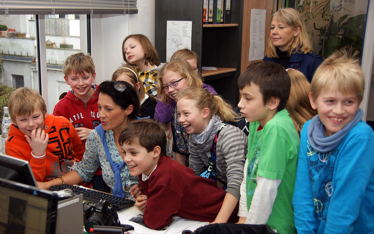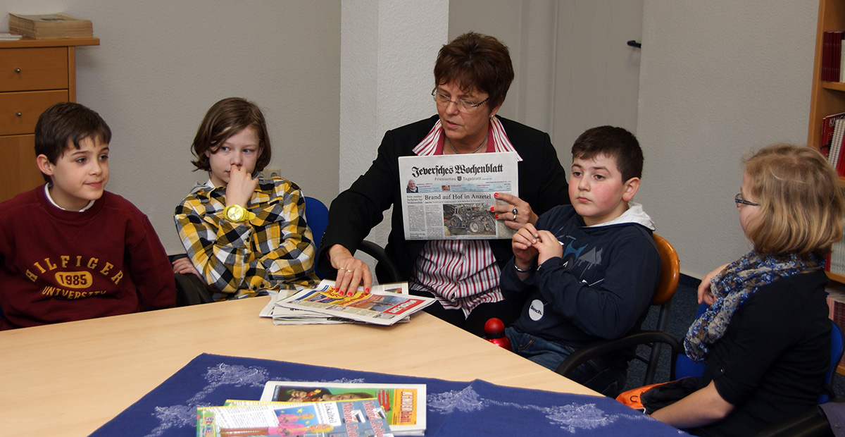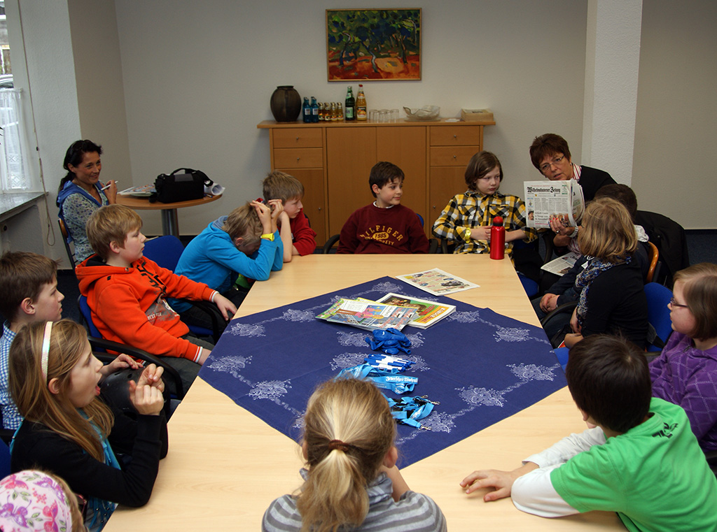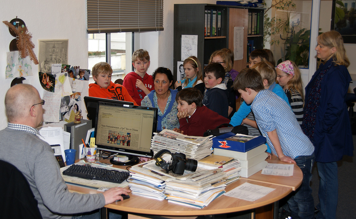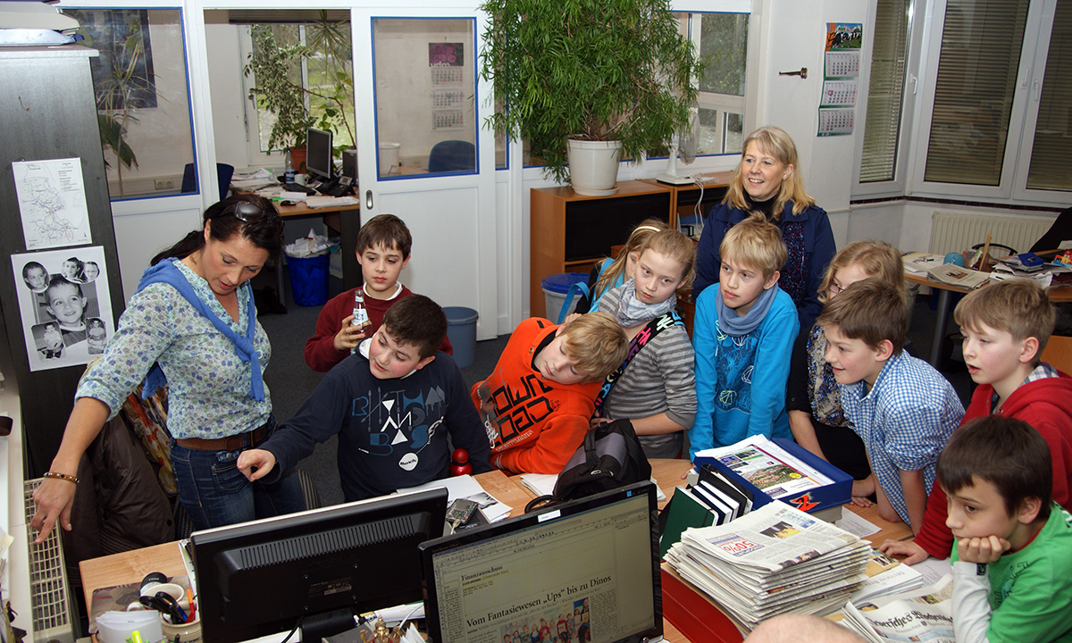Kinder der PC-AG und der 4. Klassen besuchen das Jeversche Wochenblatt |