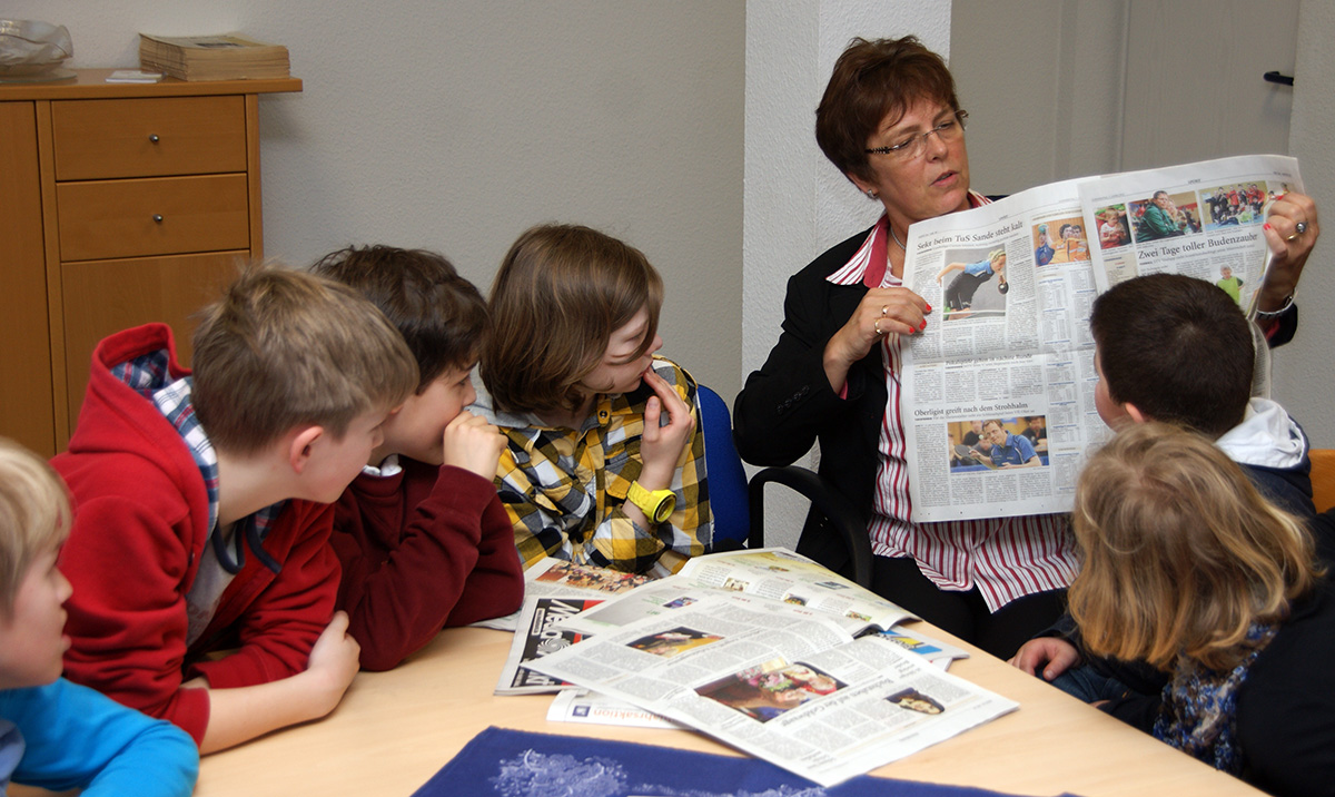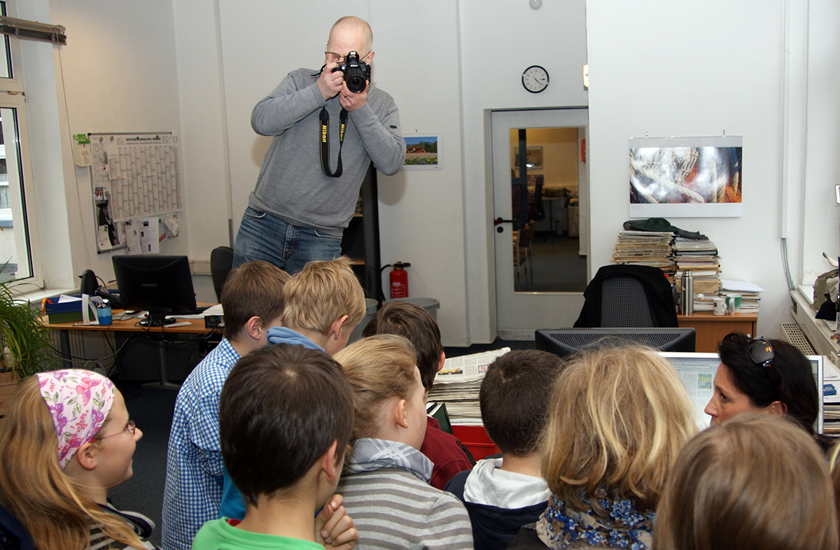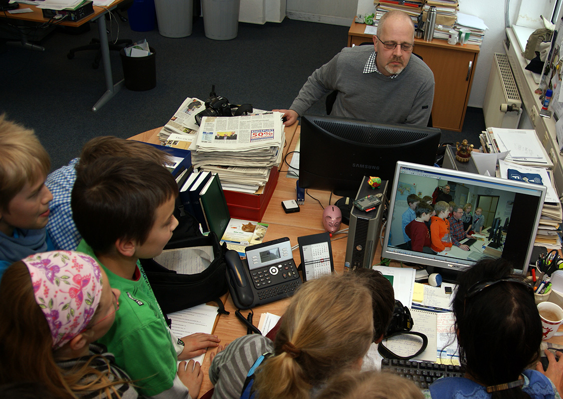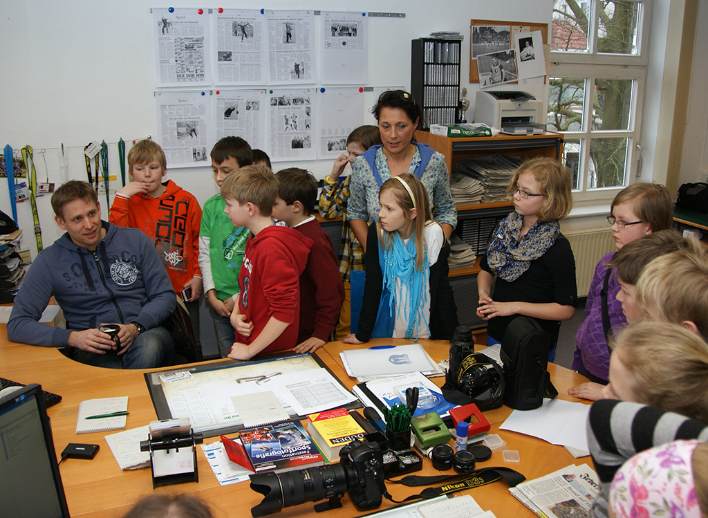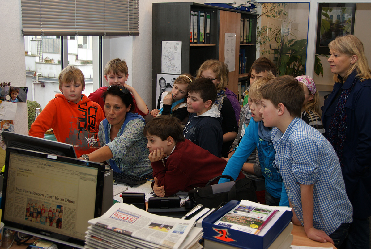 Kinder der PC-AG und der 4. Klassen besuchen das Jeversche Wochenblatt |