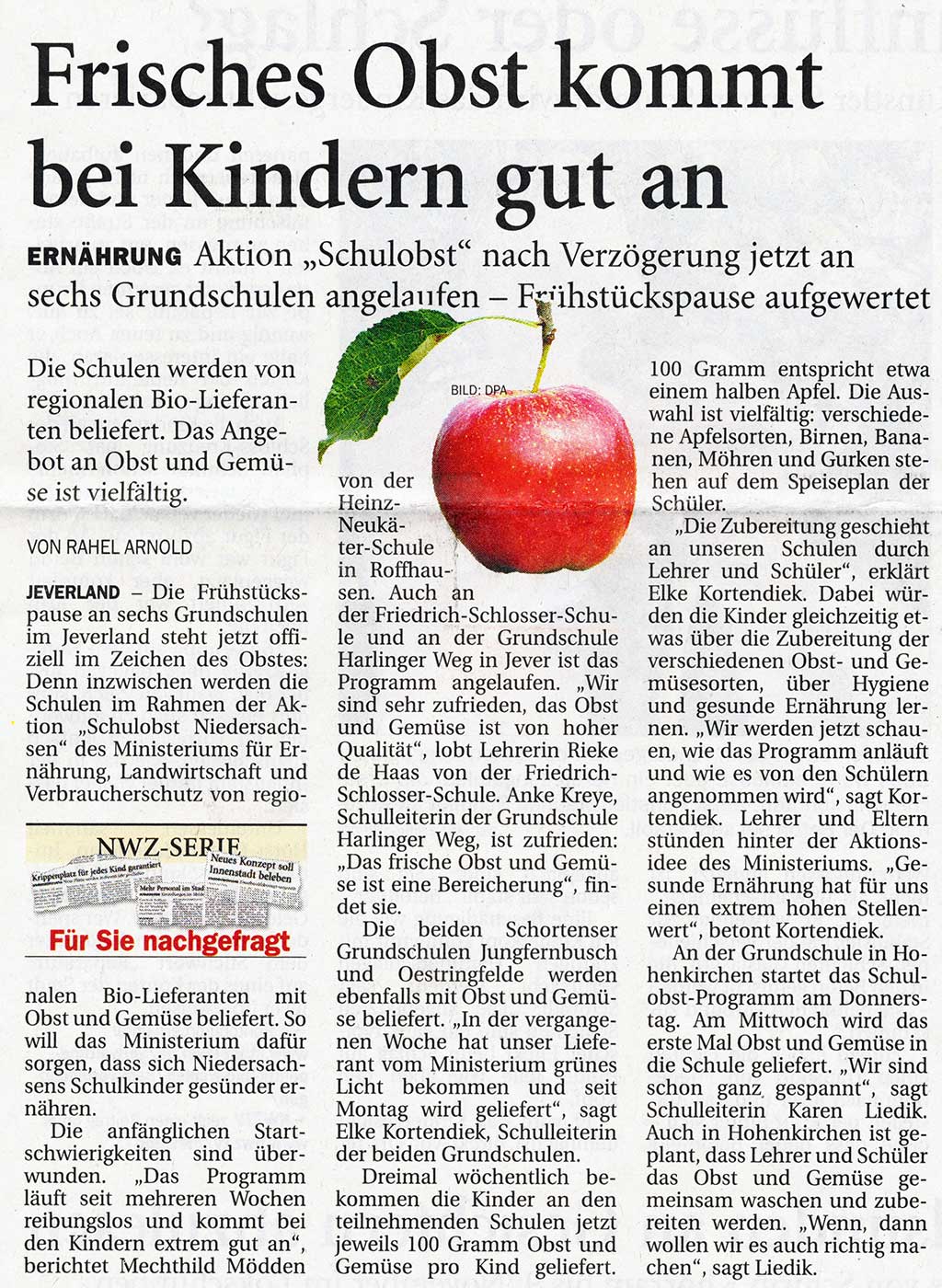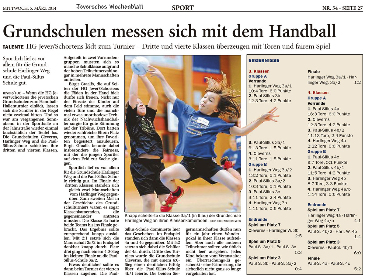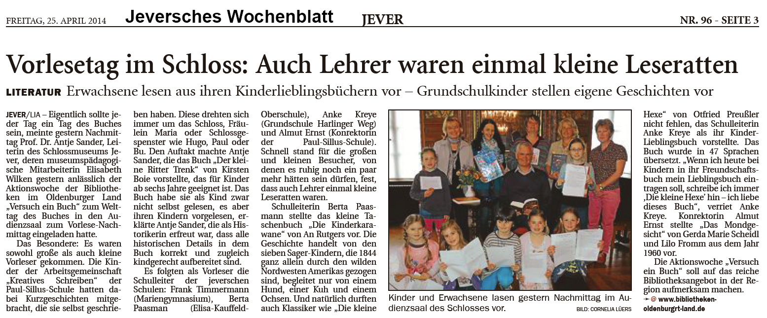 Klasse 3/4 Bericht Jade-Weser-Zeitung online Bericht Jeversches Wochenblatt |