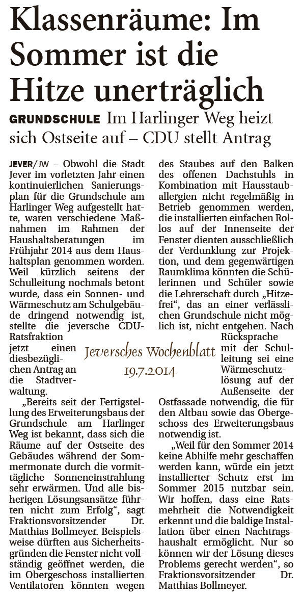 22.01.2014 | Bericht Jeversches Wochenblatt | |
