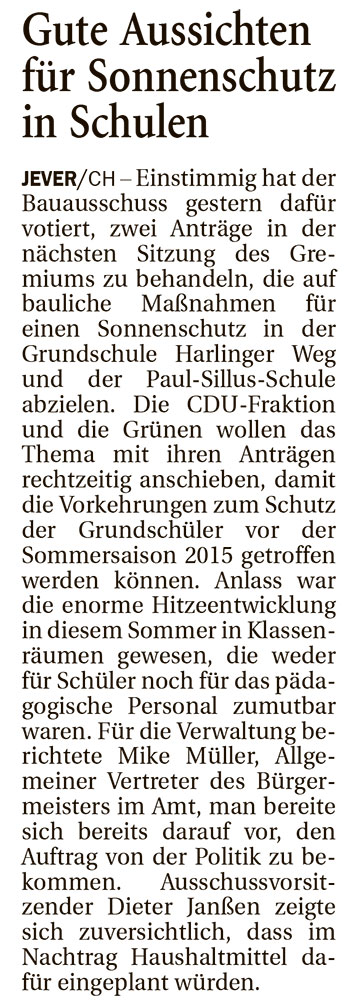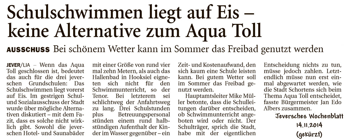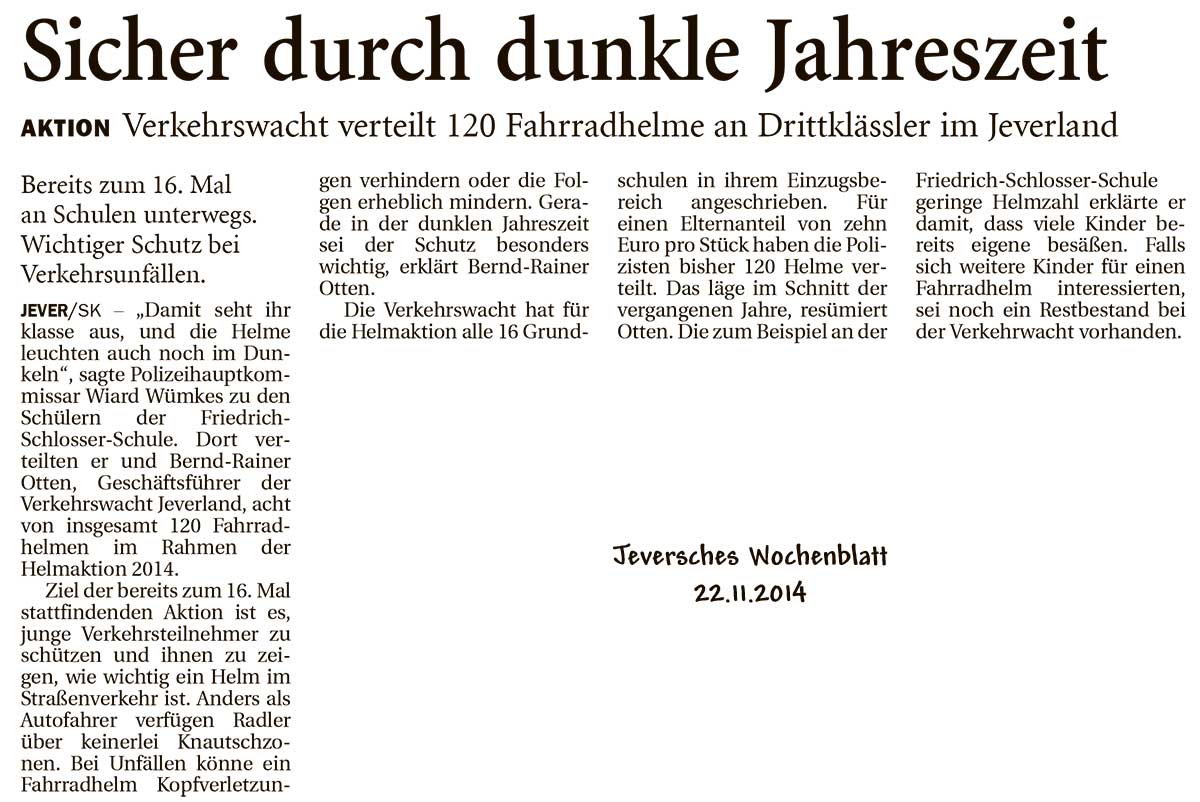 14.11.2014 | Bericht Jeversches Wochenblatt |