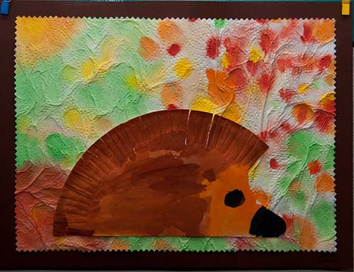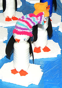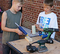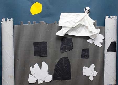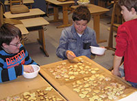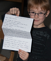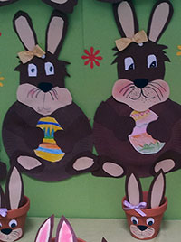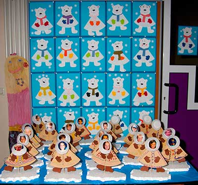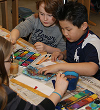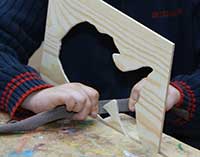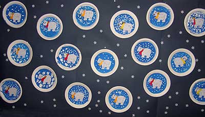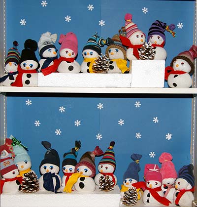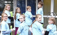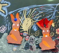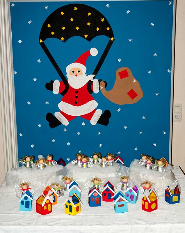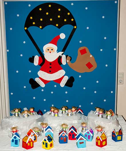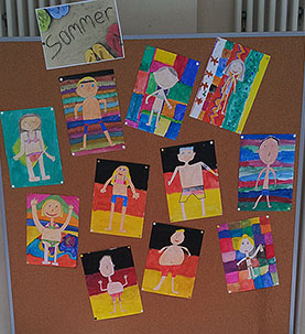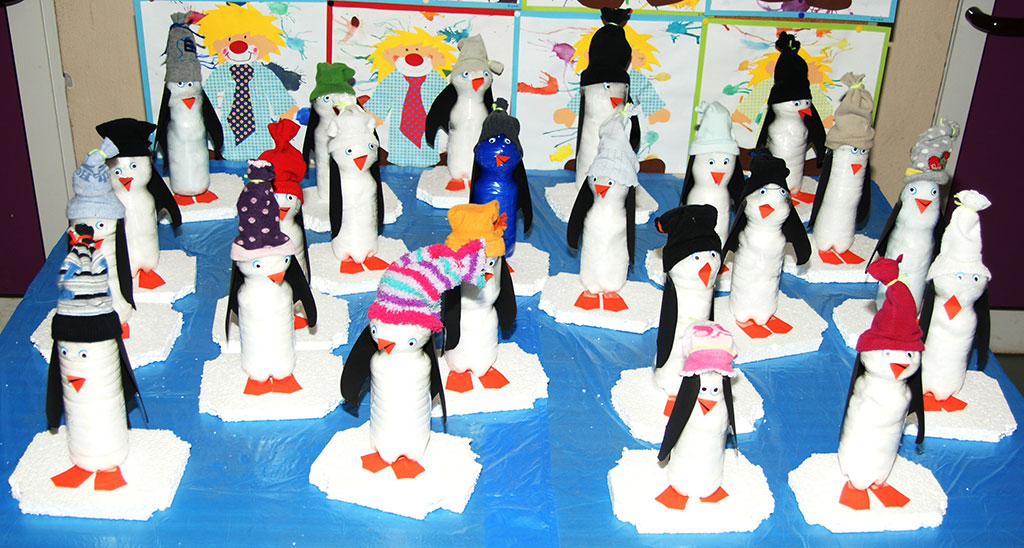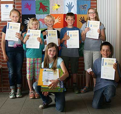 bringen die Arbeiten der 3. und 4. Klassen aus der Zeltwerkstatt vom September 2013 zur Schule |