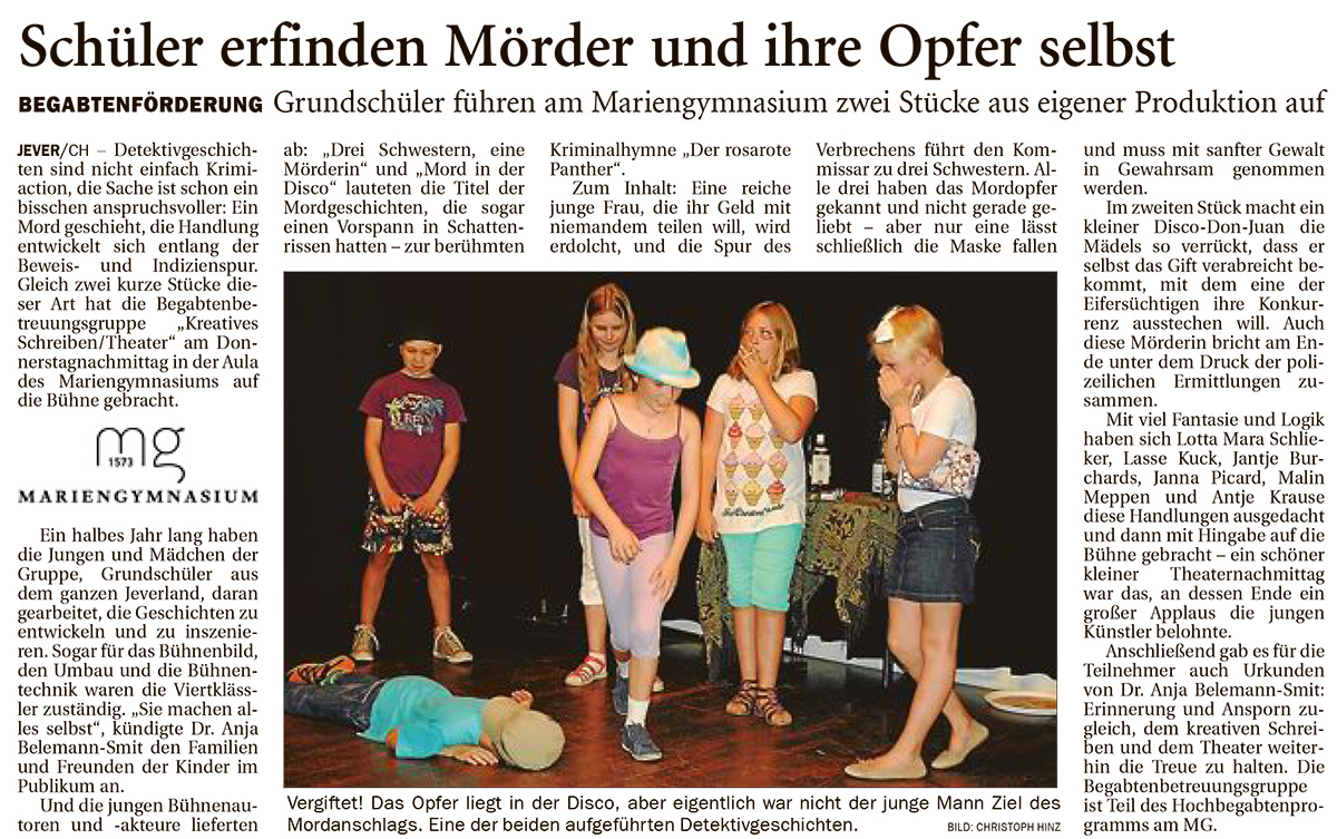 Schreib- und Theater-AG Bericht Jeversches Wochenblatt |