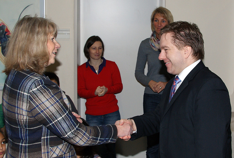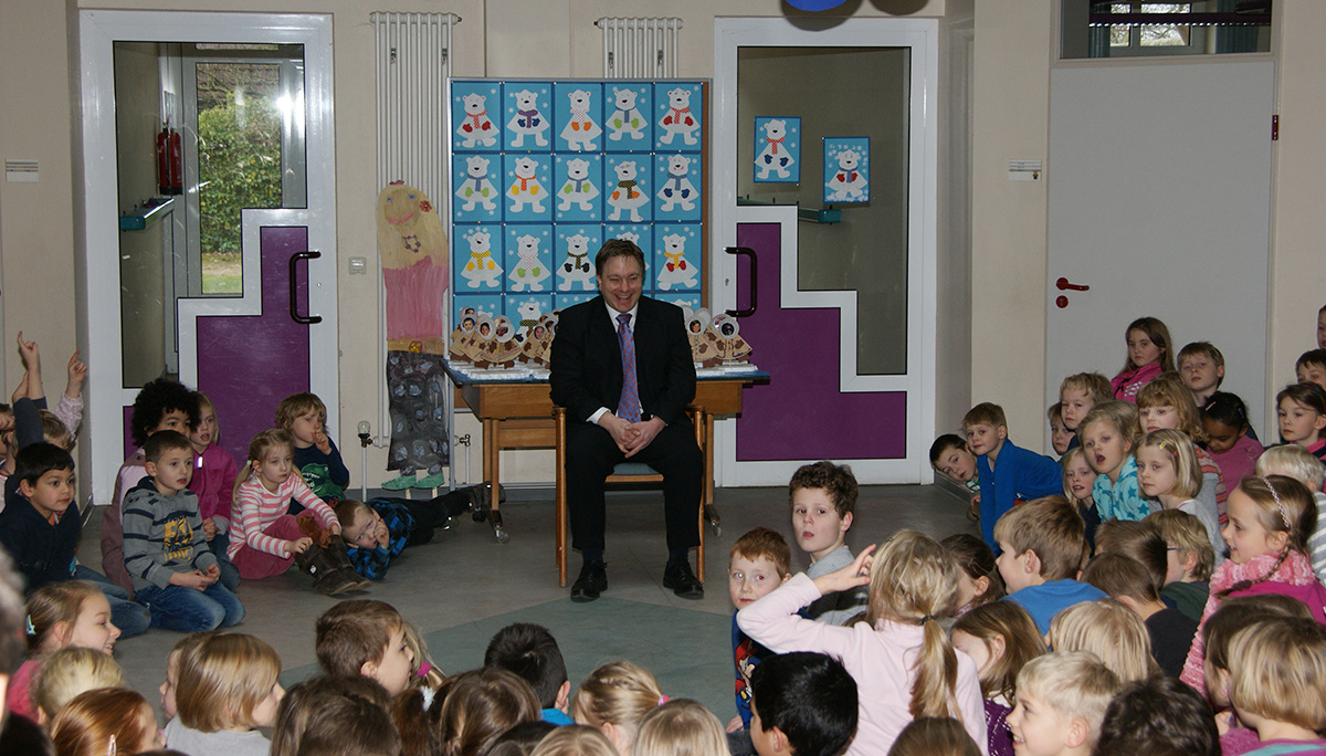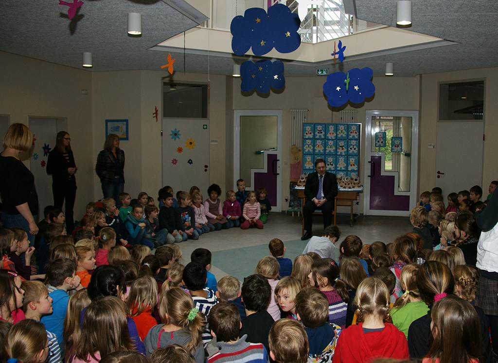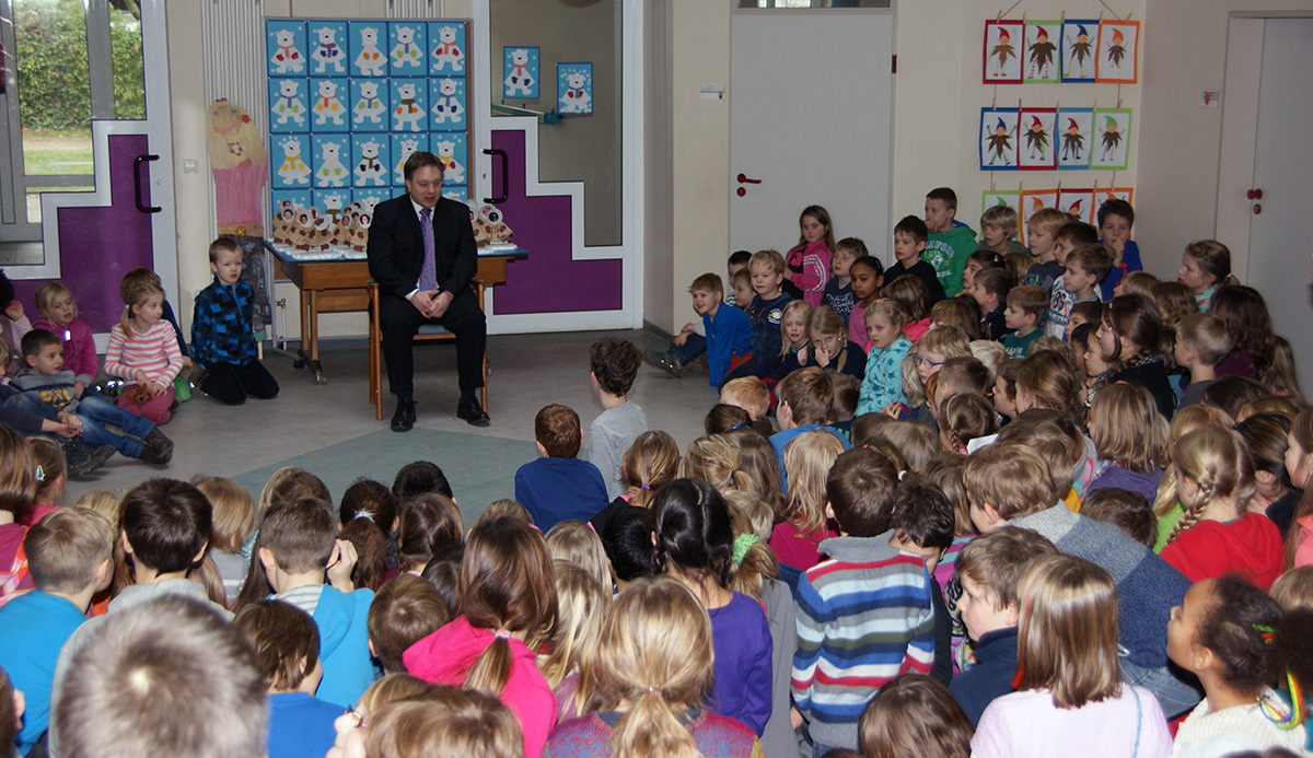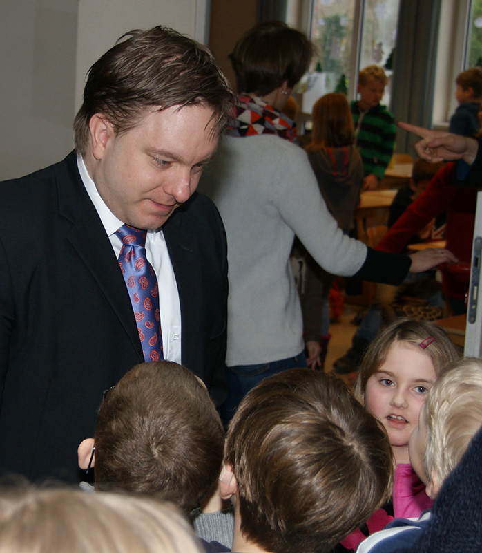 Der neue Bürgermeister Jan Edo Albers stellt sich in der Schule vor.