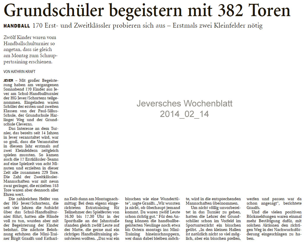 Handballturnier der 1. und 2. Klassen