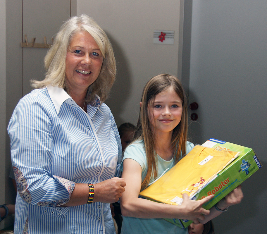 gelang es Charise alle Aufgaben richtig zu lösen. Für diese tolle Leistung bekam sie einen Roboter-Baukasten und das T-Shirt für den größten Känguru-Sprung. Sehr knapp verfehlten Hendrike, Timon und Karim einen 3. Platz. |