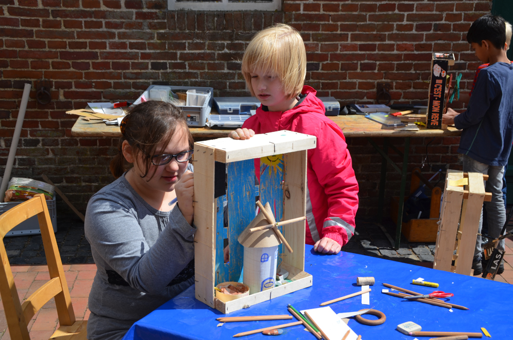 Klasse 3a beim Erfinderworkshop "Windmaschinen"