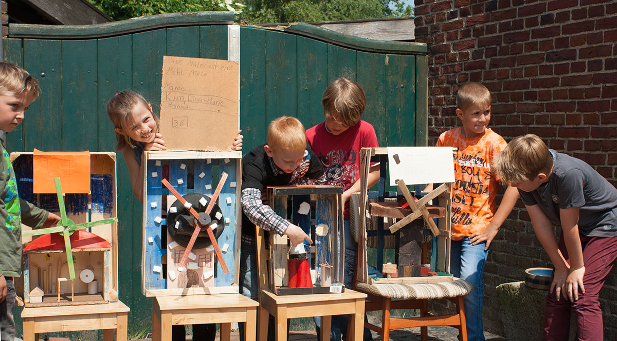 Klasse 3b beim Erfinderworkshop "Windmaschinen"