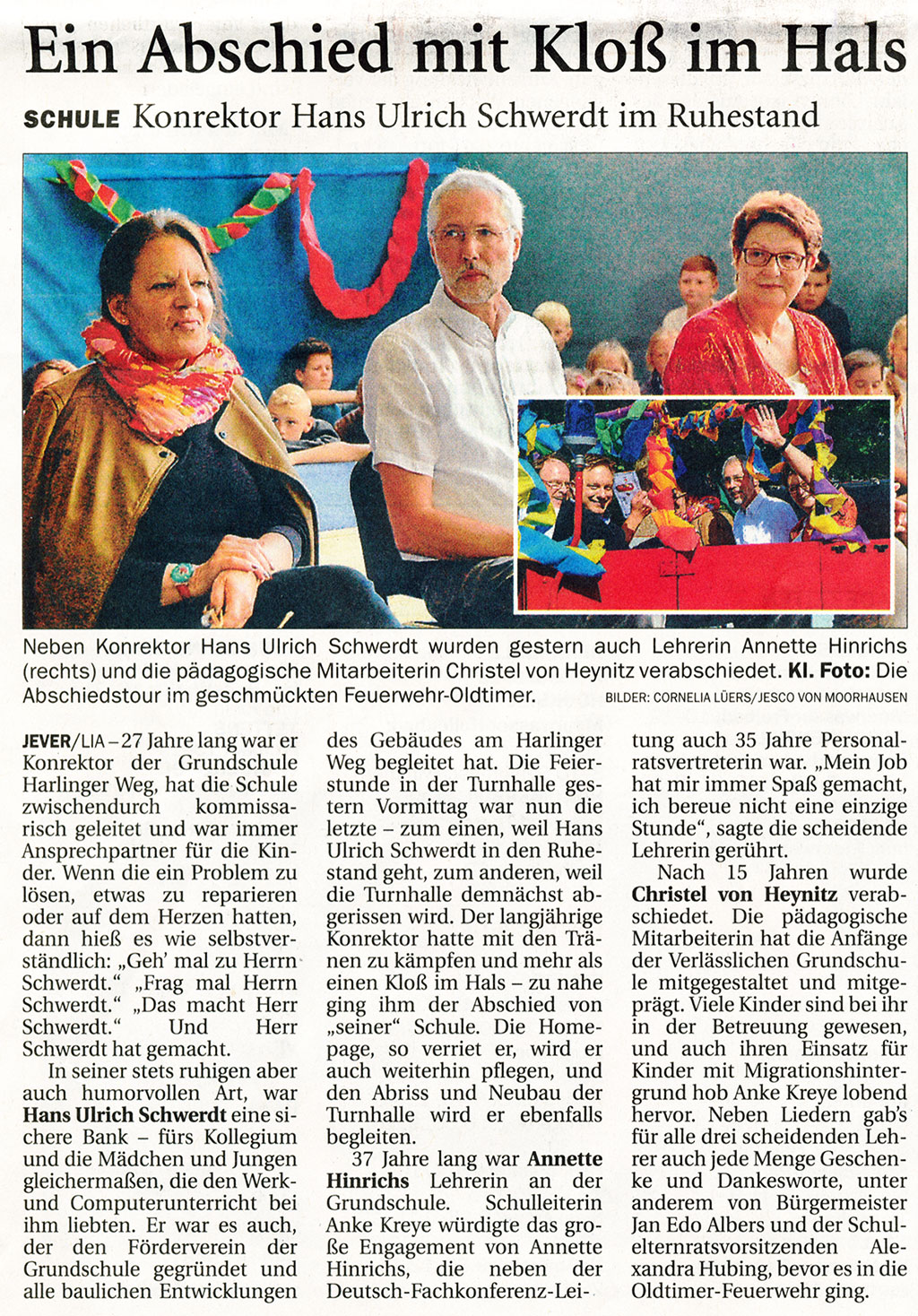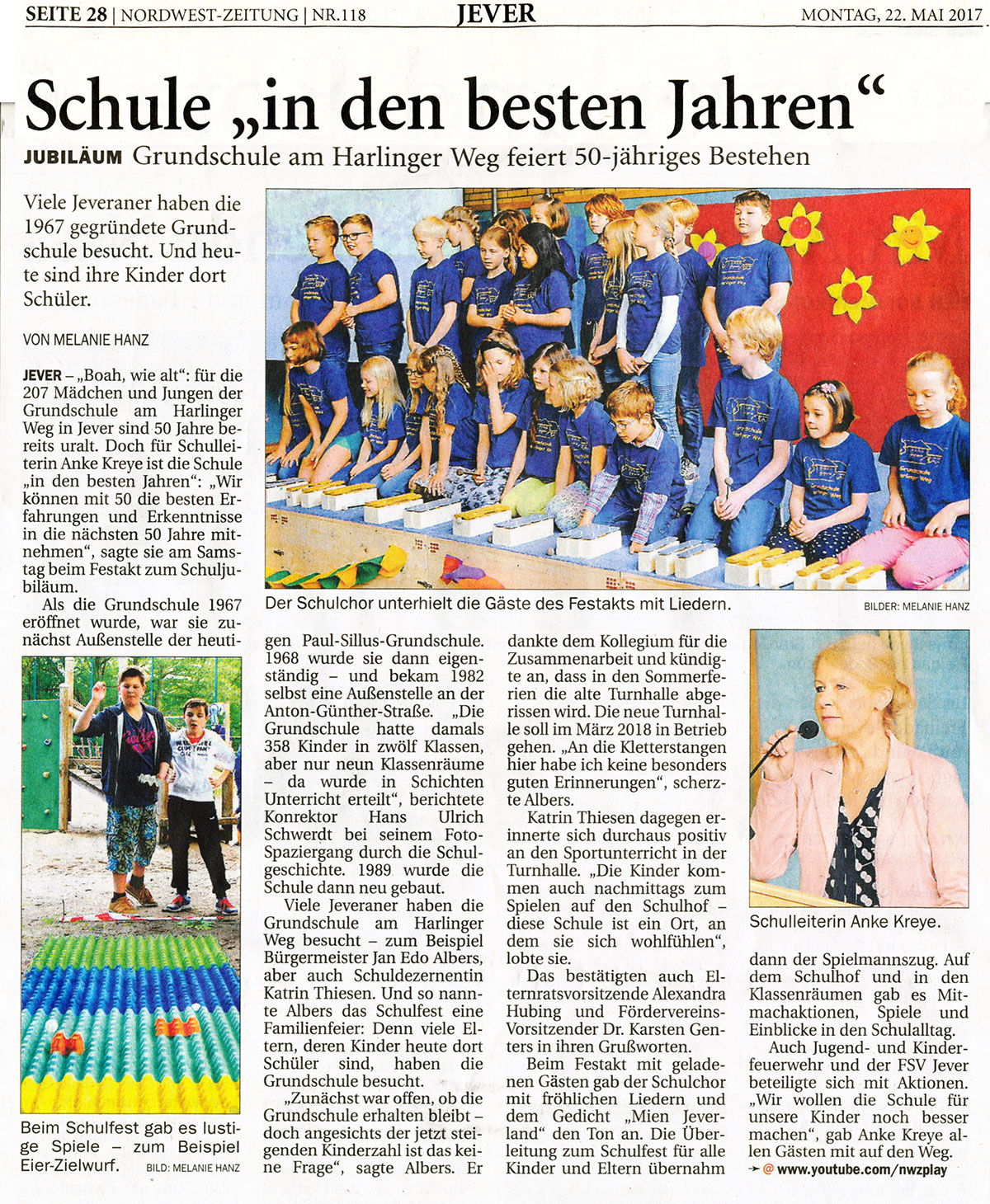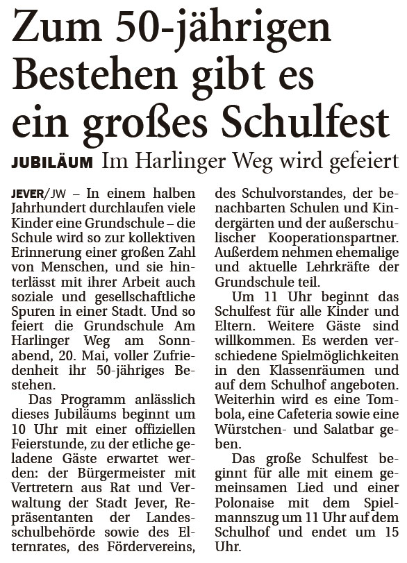 Fotos von der FeierstundeFotos vom SchulfestAuftritt des Kollegiums (Video 14MB)Bericht Jeversches WochenblattVideo NWZ OnlineBericht NWZ |