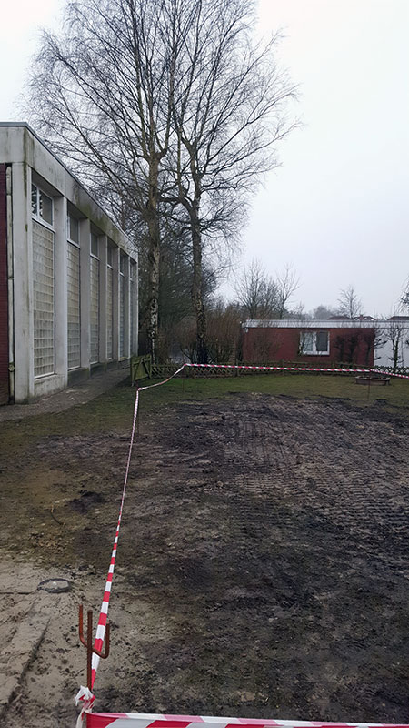 Vorbereitungen zum Bau der neuen Turnhalle |