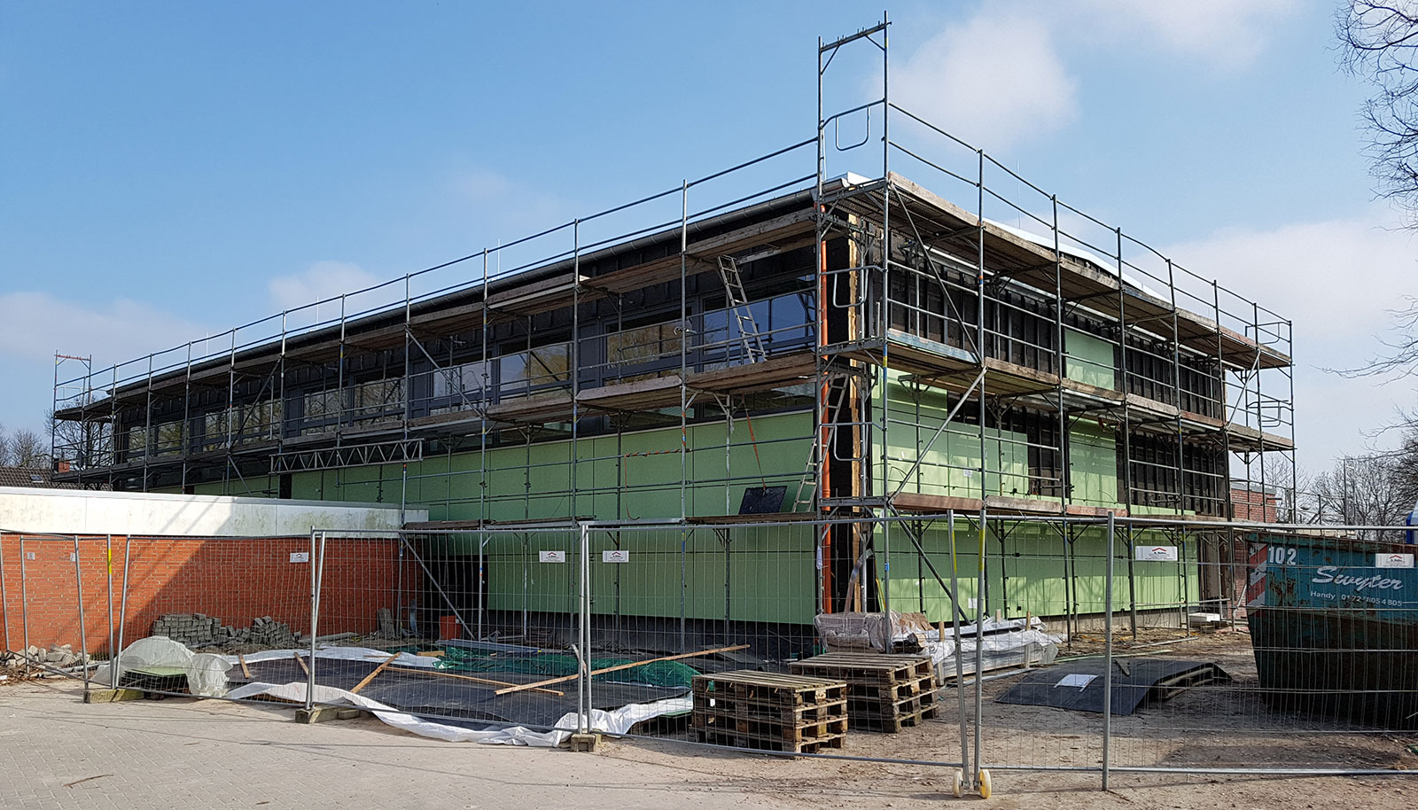 07.02.2018 | Vorbereitung für die Fassadenverkleidung der Turnhalle |