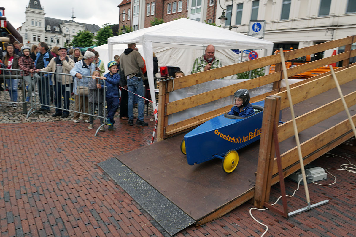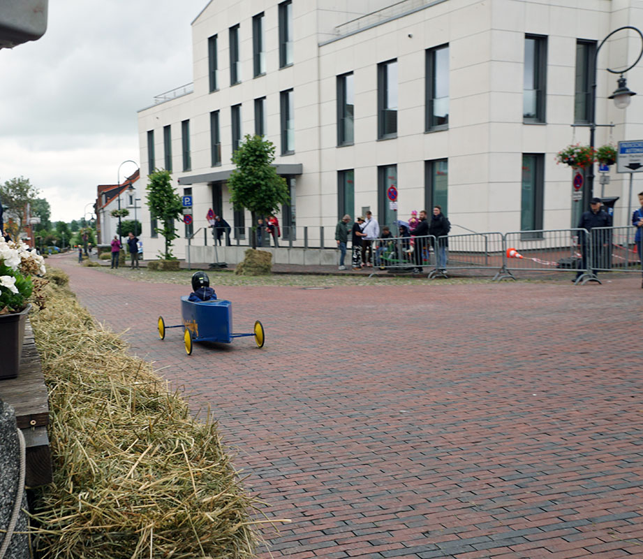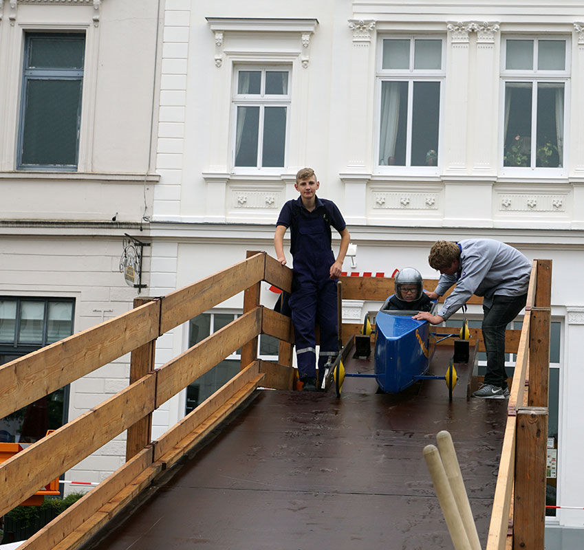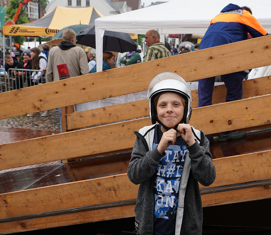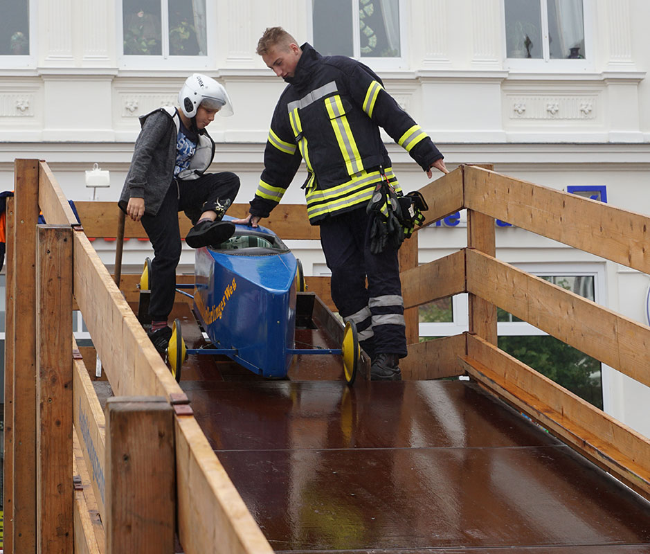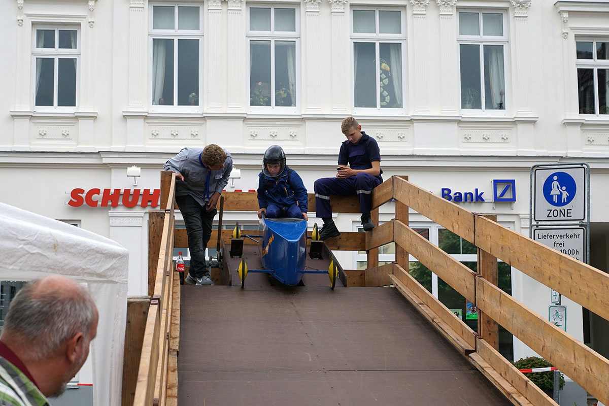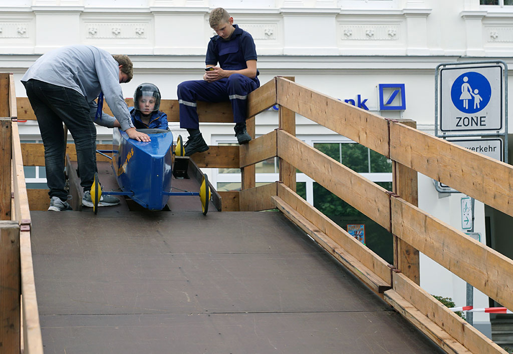 Tom Neumann bringt mit seinem Vater den Rennwagen zur Piste |