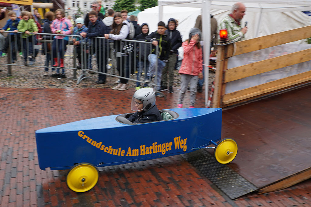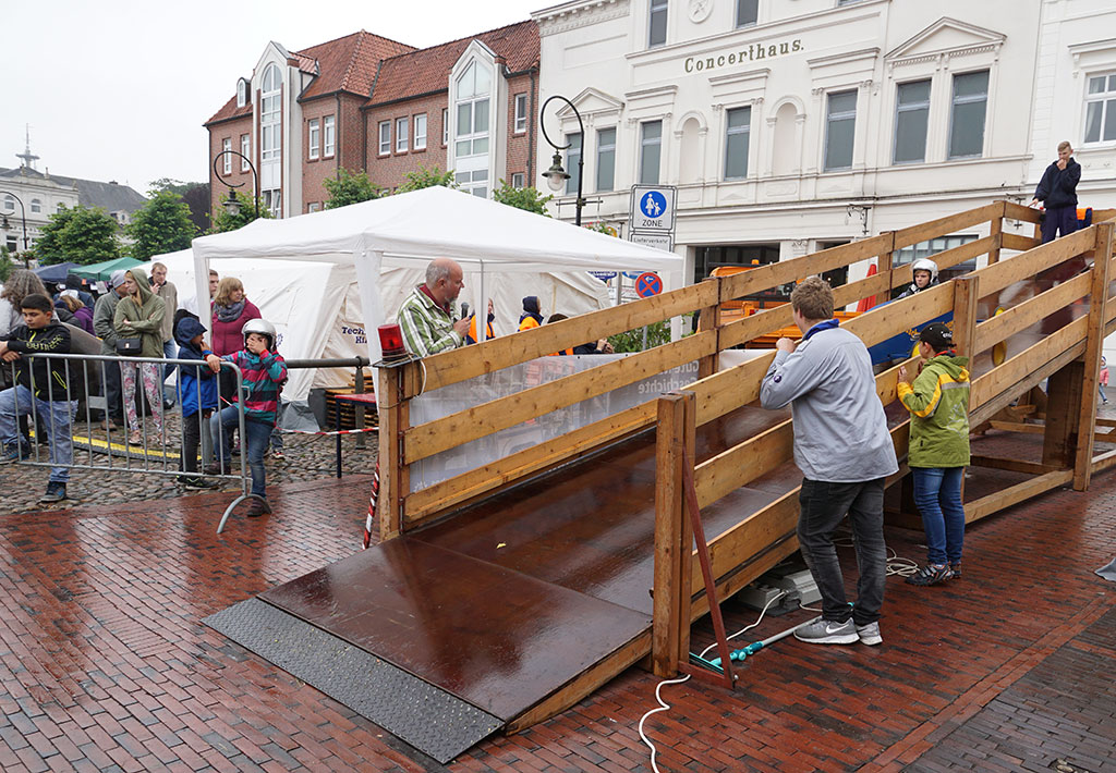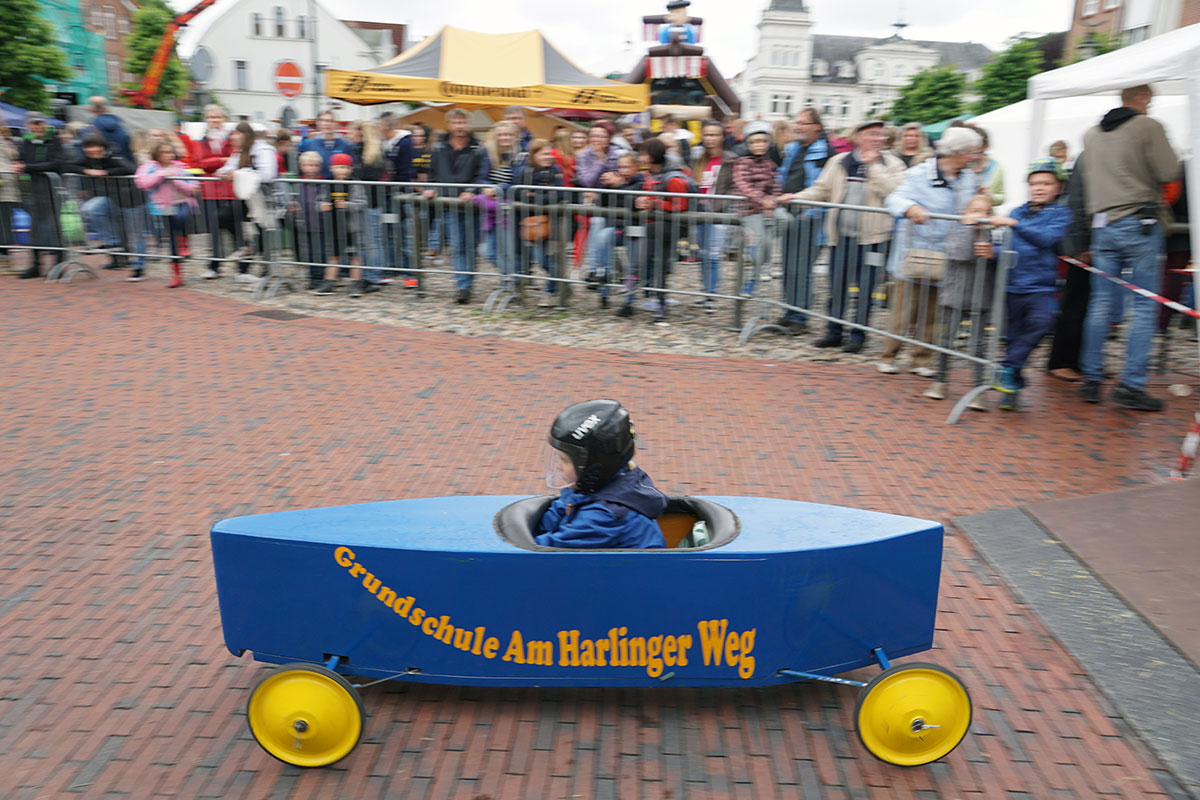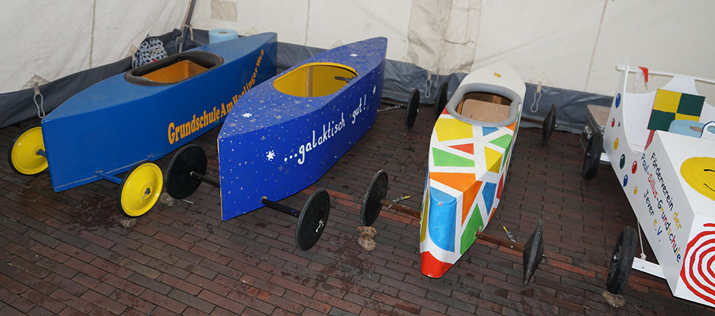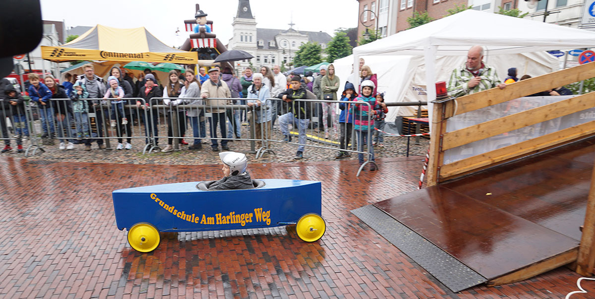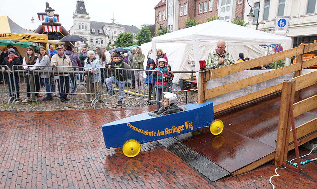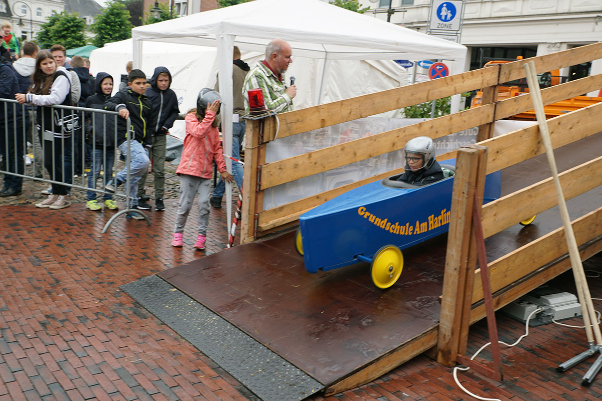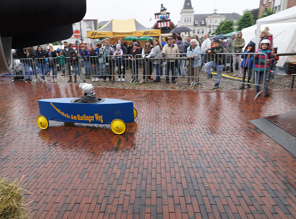 Tom Neumann bringt mit seinem Vater den Rennwagen zur Piste |