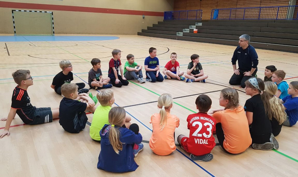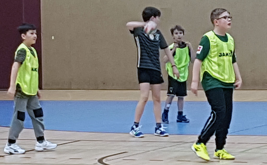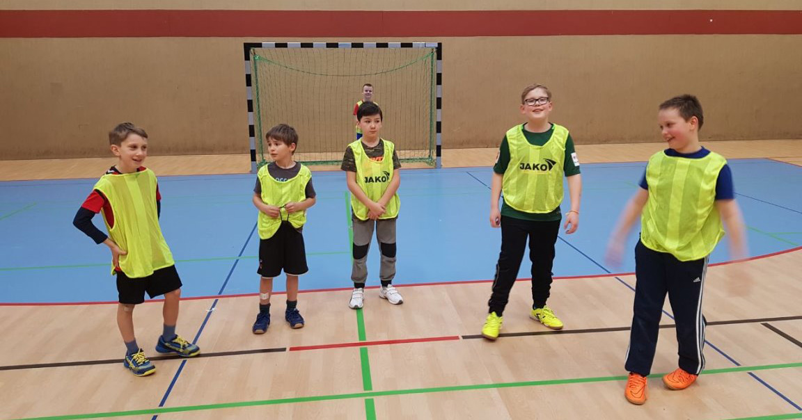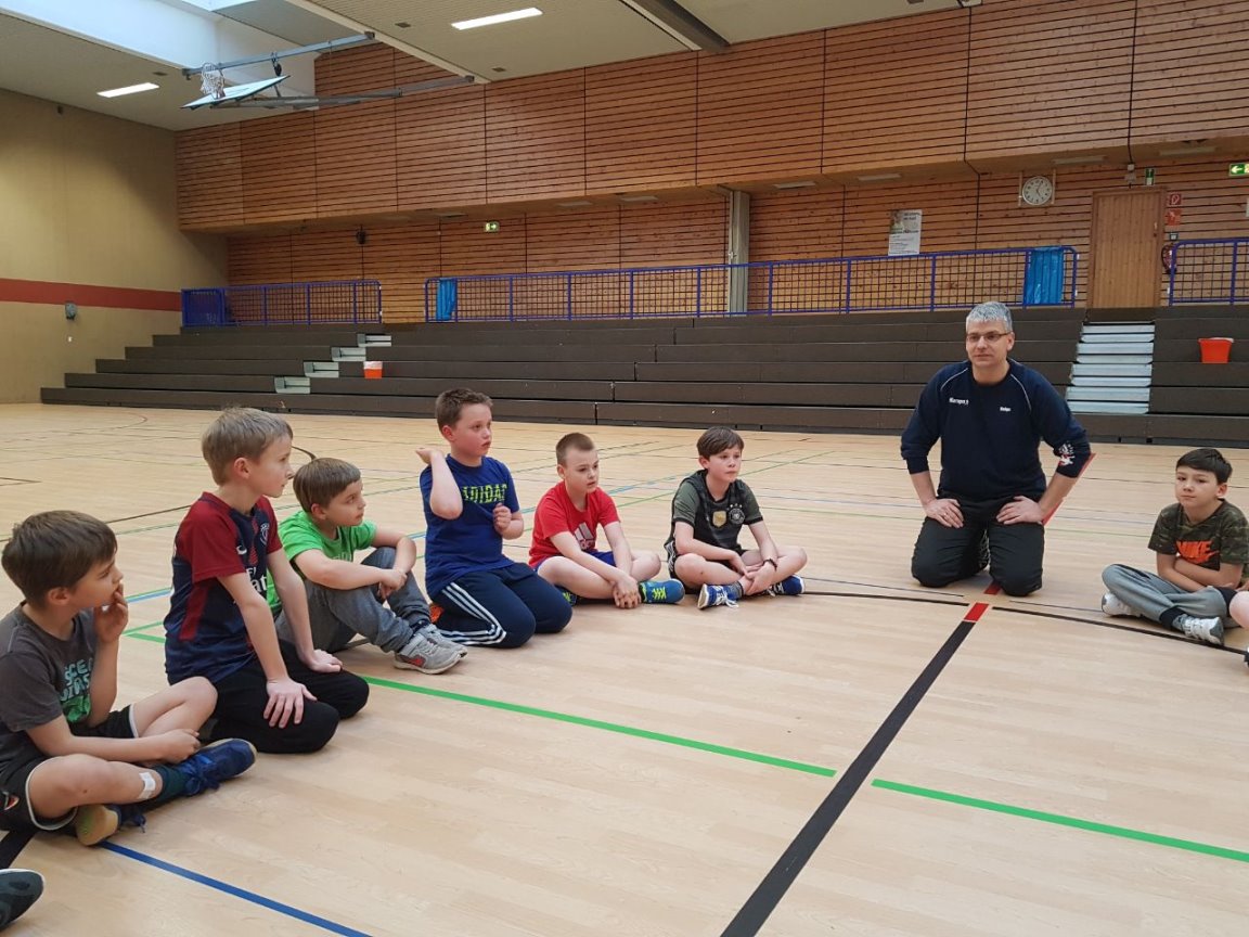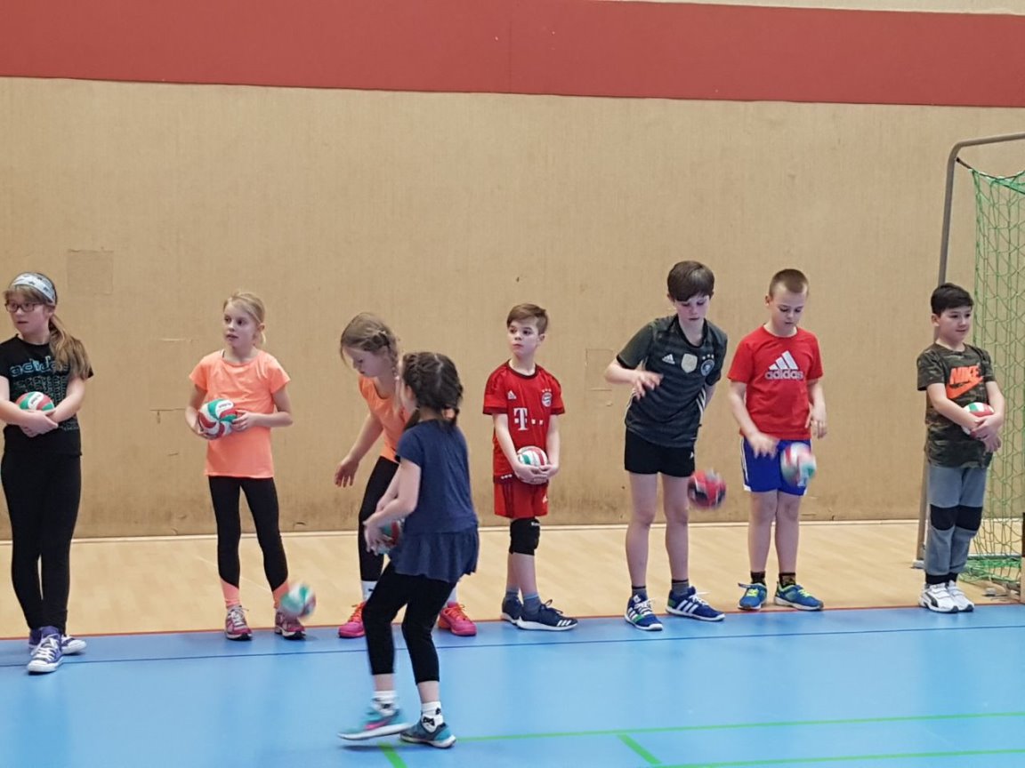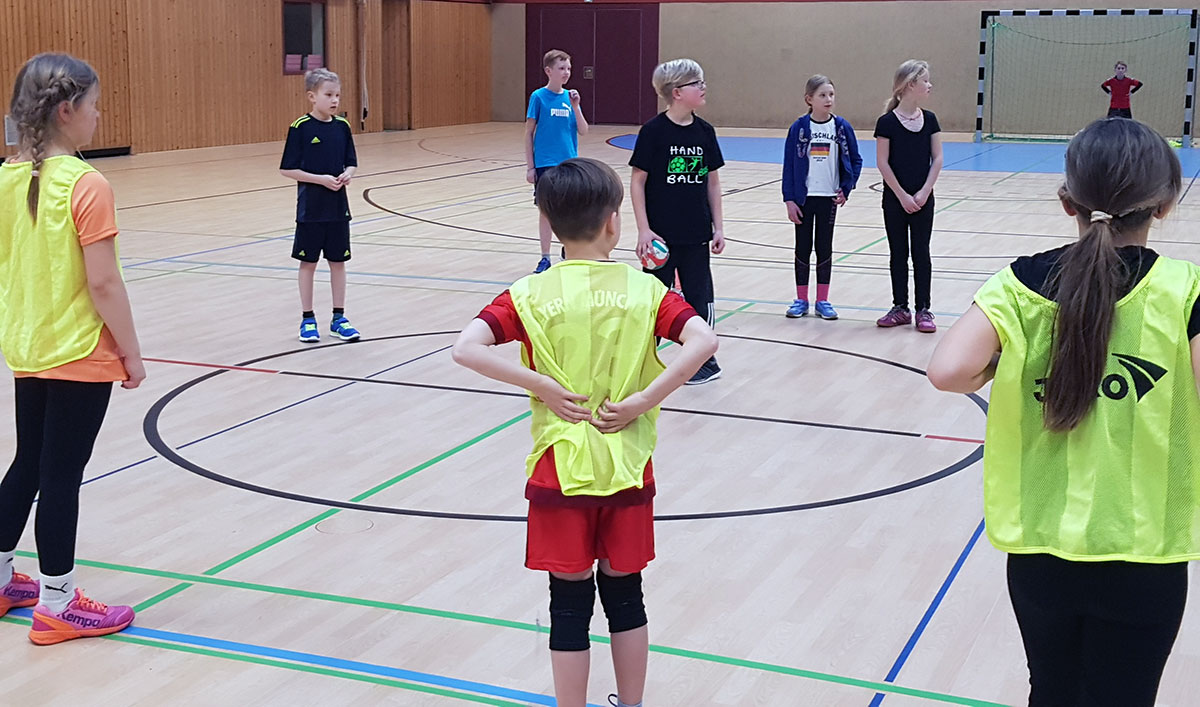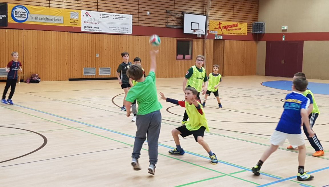 Da unsere Schule zur Zeit keine Turnhalle hat, nahm Frau Simon-Lübbenauf Einladung der HG-Jever-Schortensan einem Handballtraining teil. |
