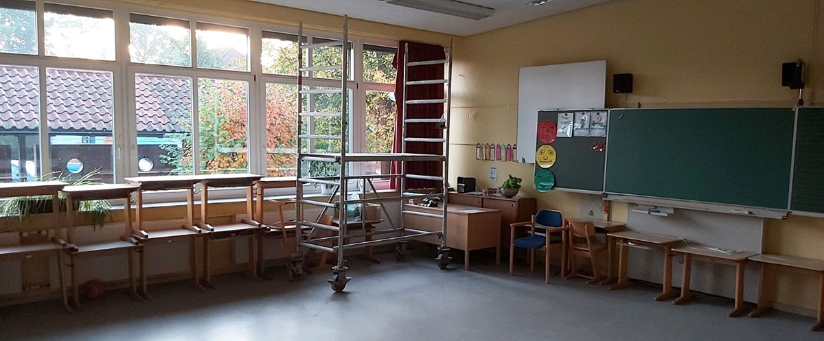 Schallschutz unter den Decken der 4 Klassenräume im Altbau