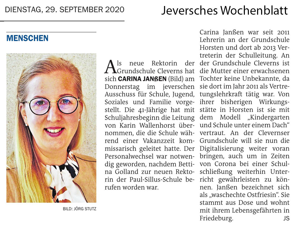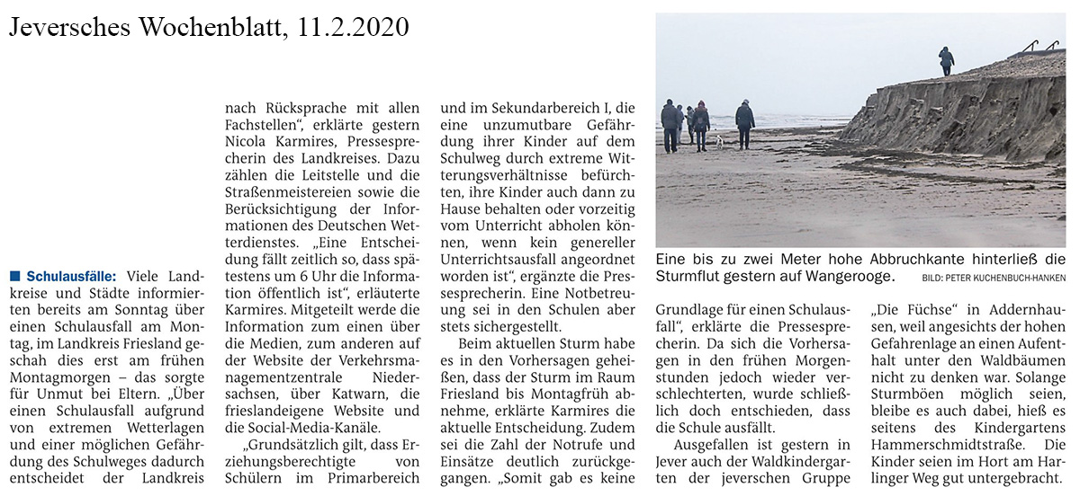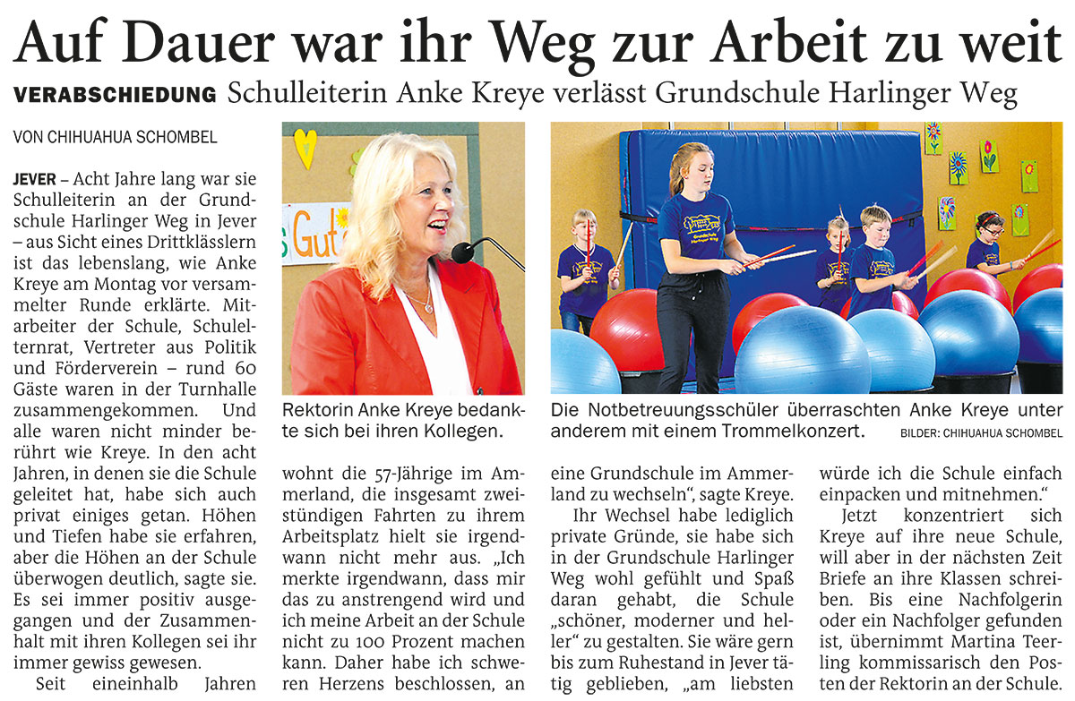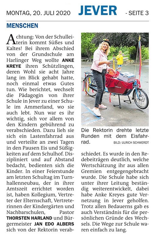 15.07.2020 | Bericht der NWZ zur Verabschiedung von Anke Kreye |