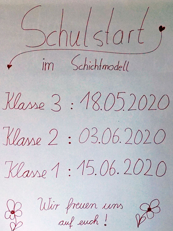 03.06.2020 | Unterrichtsbeginn im Schichtmodell für die 2. Klassen |