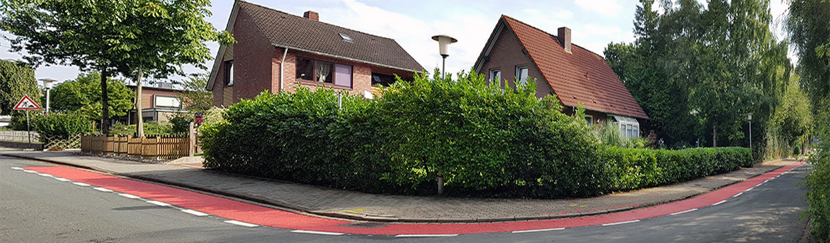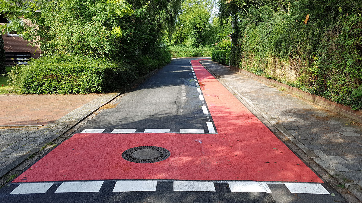 Mit dieser roten Markierung sind unsere Fahrradkinder deutlich besser im Verkehr geschützt.