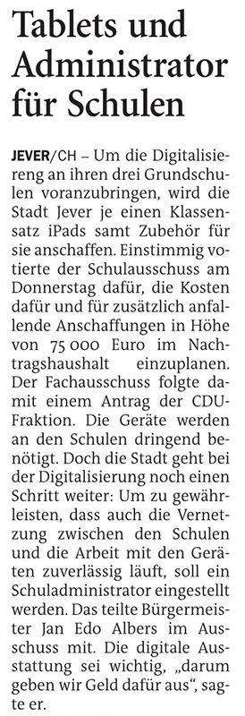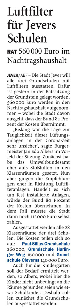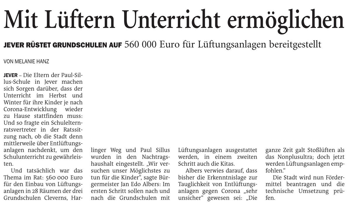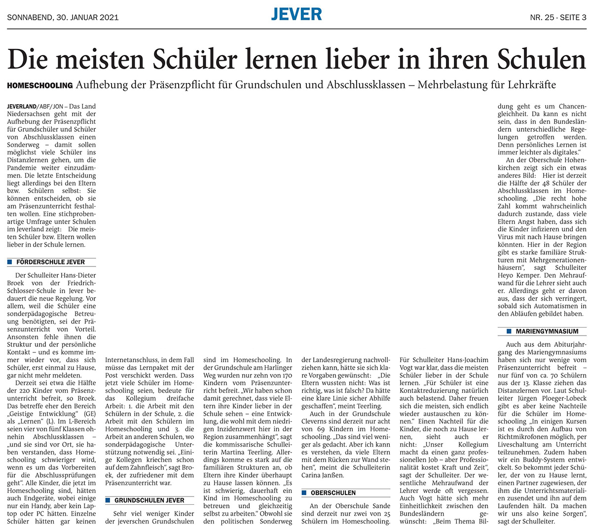 13.01.2021 | Bericht: Jeversches Wochenblatt |