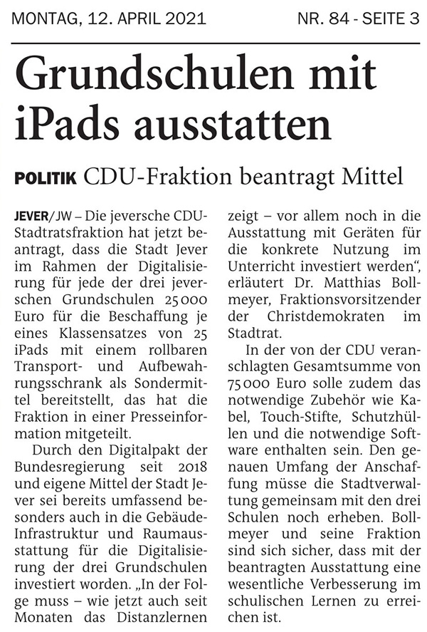 05.06.2021 | Bericht Jeversches Wochenblatt |