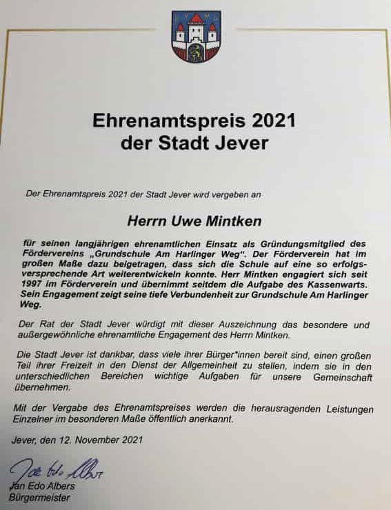 12.11.2021 | Ehrenamtspreis für Einsatz im Förderverein |